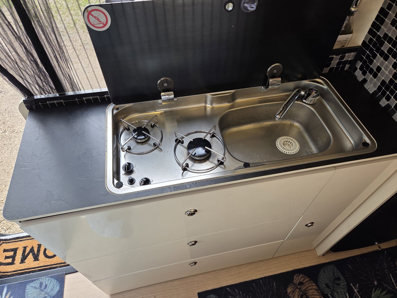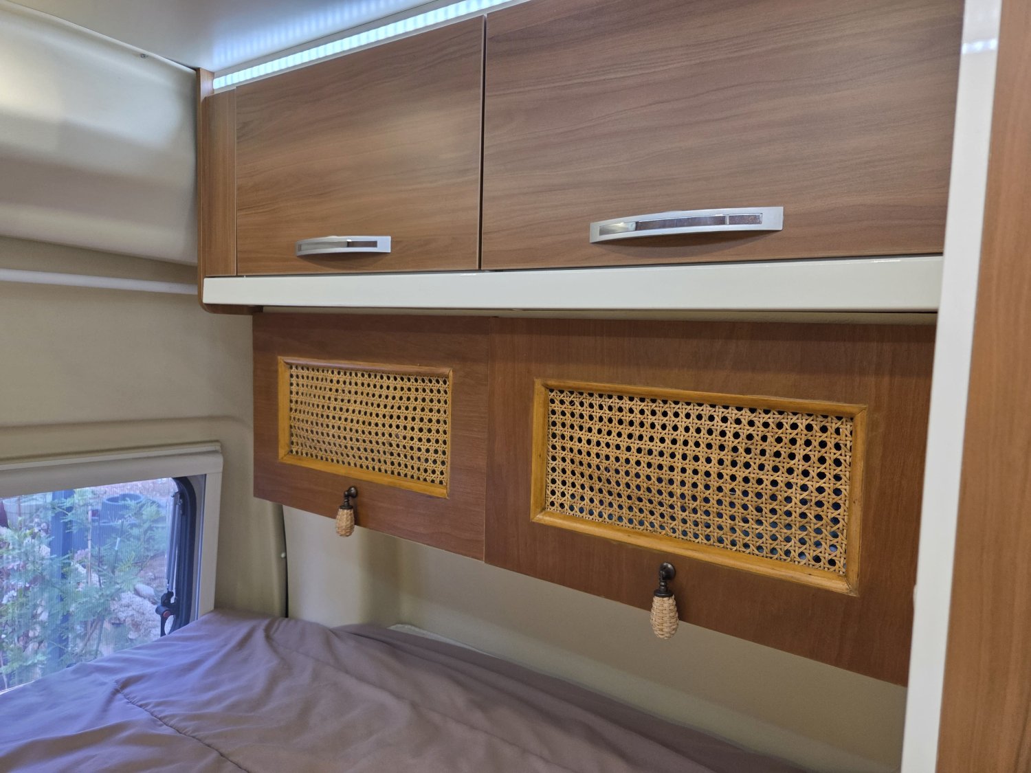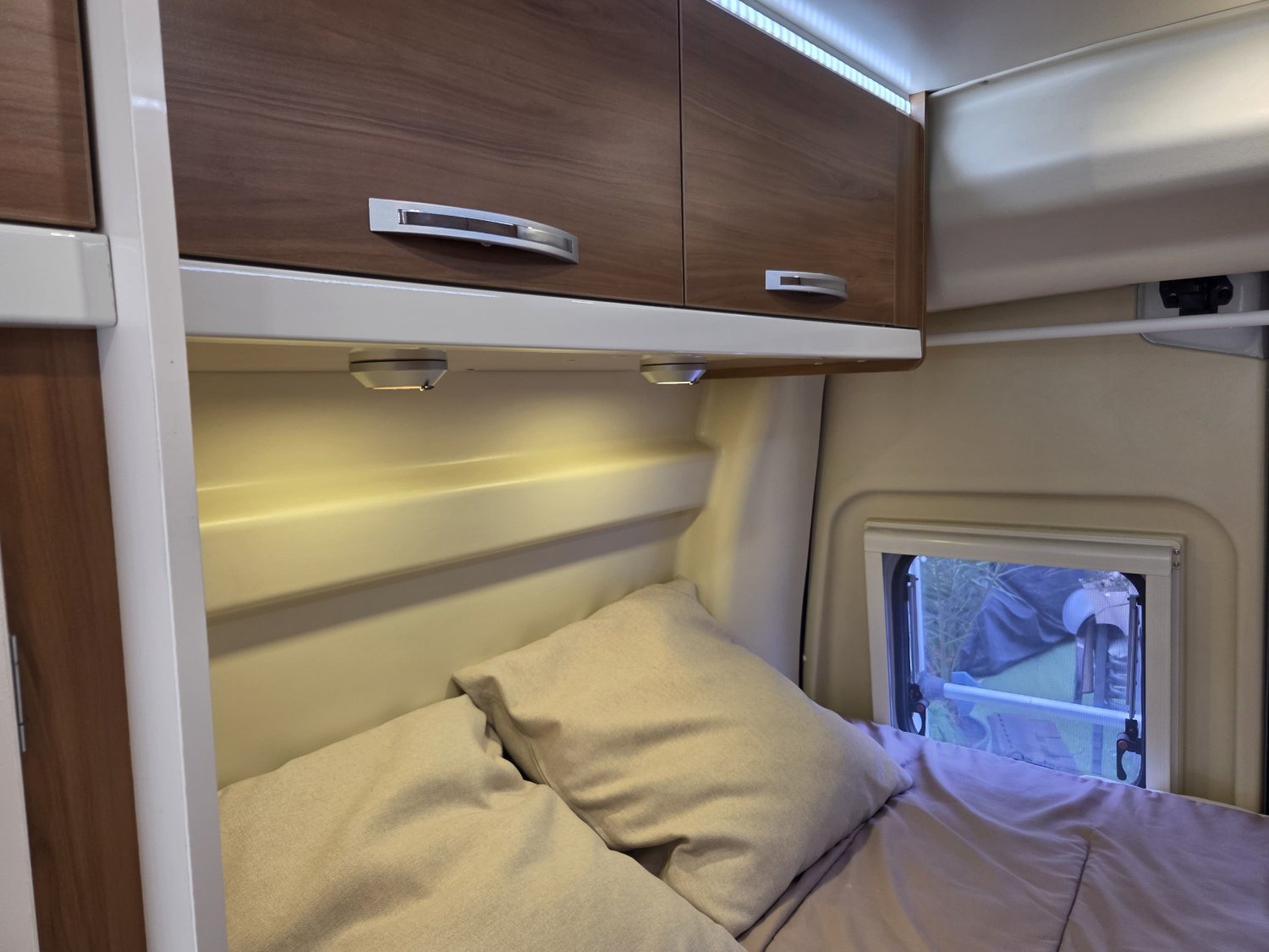 CHAUFFAGE CARBURANT, STORE EXTERIEUR 3M, GAZINIERE 2 FEUX, FENETRE SDB, ECLAIRAGE LED, PORTE VELO, REFRIGERATEUR 12V A COMPRESSION, CHAUFFE-EAU GAZ