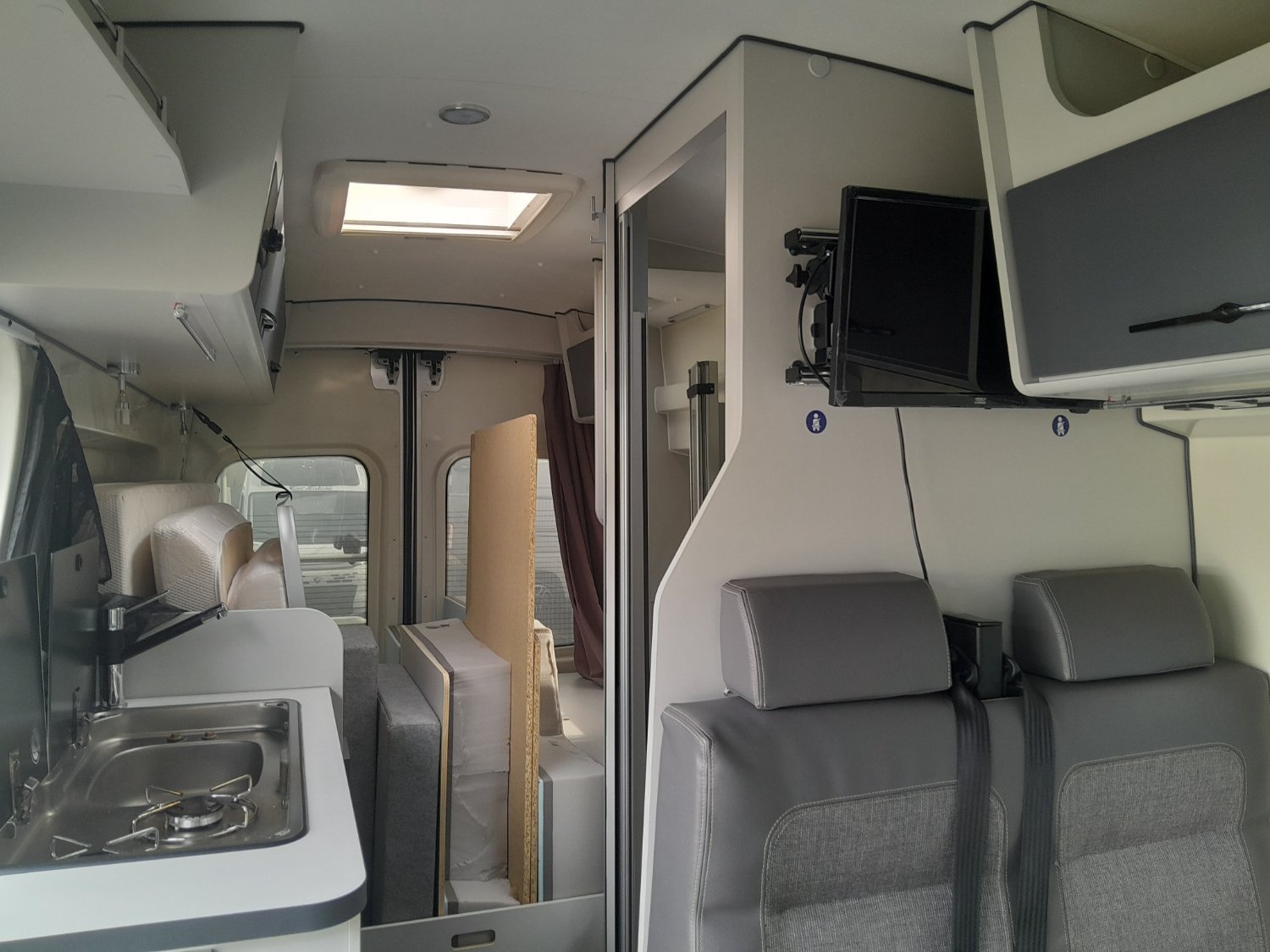 store, panneau solaire, convertisseur 2000W,batterie Lithium 100Ah,moustiquaire/occultants, porte vélos, caméra de recul, TV connectée, autoradio.