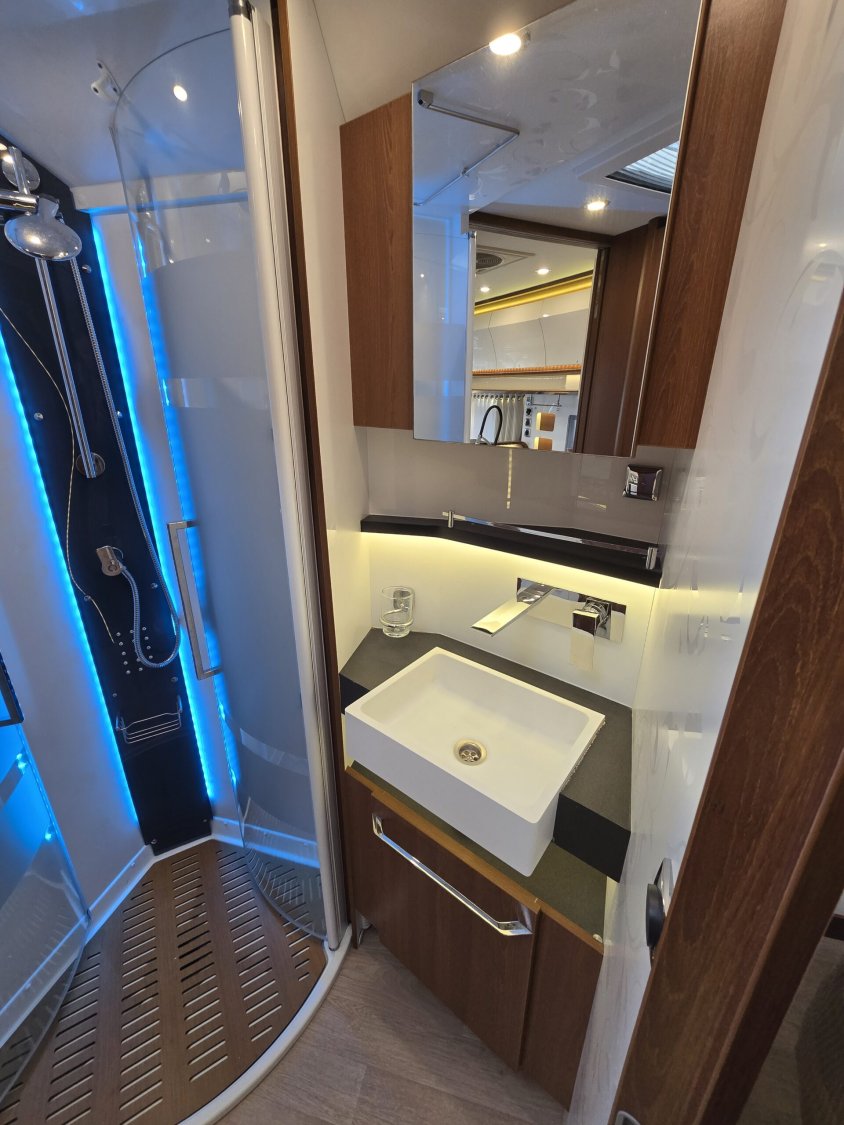 CHAUFFAGE ALDE – PLANCHER CHAUFFANT – PANNEAUX SOLAIRES 2X140W – 2 TVS – ANTENNE SAT AUTO – STORE EXT AVEC LED – STATION MULTIMEDIA GPS CAMERA DE RECUL – JANTES ALU 16’ – HOTTE ASPIRANTE – STORE CABINE ELECTRIQUE – COMMANDES AU VOLANT – VOLANT CUIR – CLIMATISATION PORTEUR – REGALUATEUR VITESSE – DOUCHETTE EXT – BATTERIE LITHIUM – LIT ARRIERE REGLABLE EN HAUTEUR – SURMATELAS – TRACTION + HILL DESCENT – TAPIS CABINE CHAUFFANT – SERRURES « IMC » – TURBOVENT – FOUR – PLAQUE GAZ+INDUCTION – LIT PAVILLON ELECTRIQUE – SELLERIE CUIR AUSTIN – VERINS STABILISATEURS MANUELS – EAU PROPRE 300L