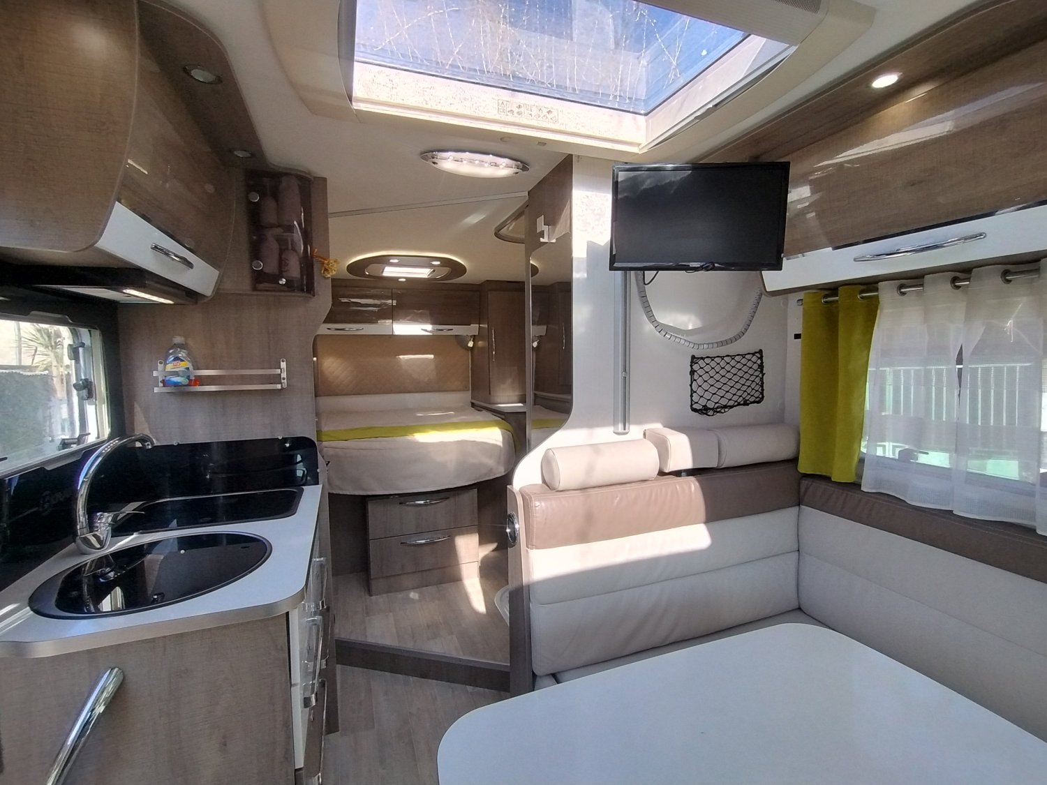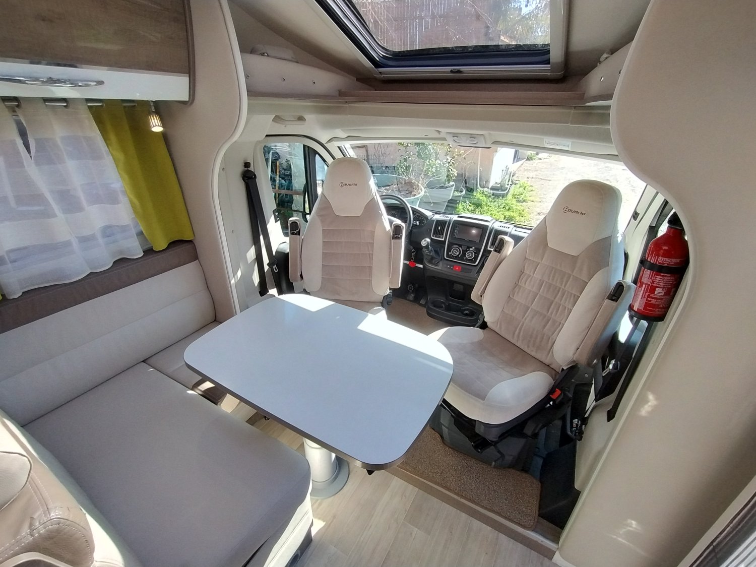 CHAUFFAGE COMBI TRUMA 6, REFRIGERATEUR/CONGELATEUR, STORE EXTERIEUR 4M, GAZINIERE 2 FEUX, PORTE SEPARATRICE, DOUCHETTE DANS SOUTE, DOUCHE ET WC SEPARES, ECLAIRAGE LED, HOTTE ASPIRANTE, MOQUETTE CABINE, MOUSTIQUAIRE DE PORTE CELLULE, PORTE VELO, REFRIGERATEUR TRI MIX, STORES PLISSES DE CABINE, TABLE TELESCOPIQUE, LANTERNEAU PANORAMIQUE, SALLE D'EAU PIVOTANTE, SALON EN U
