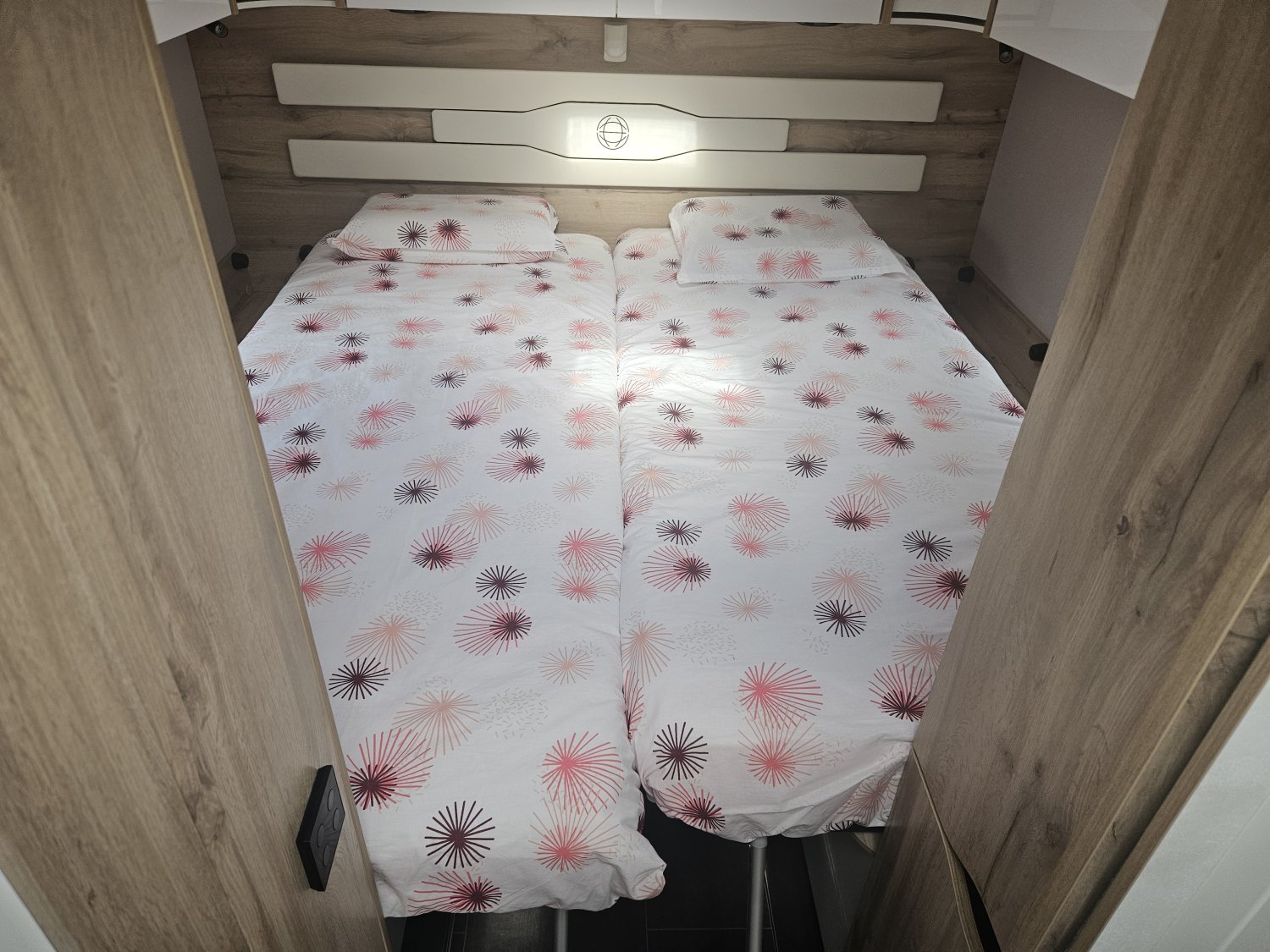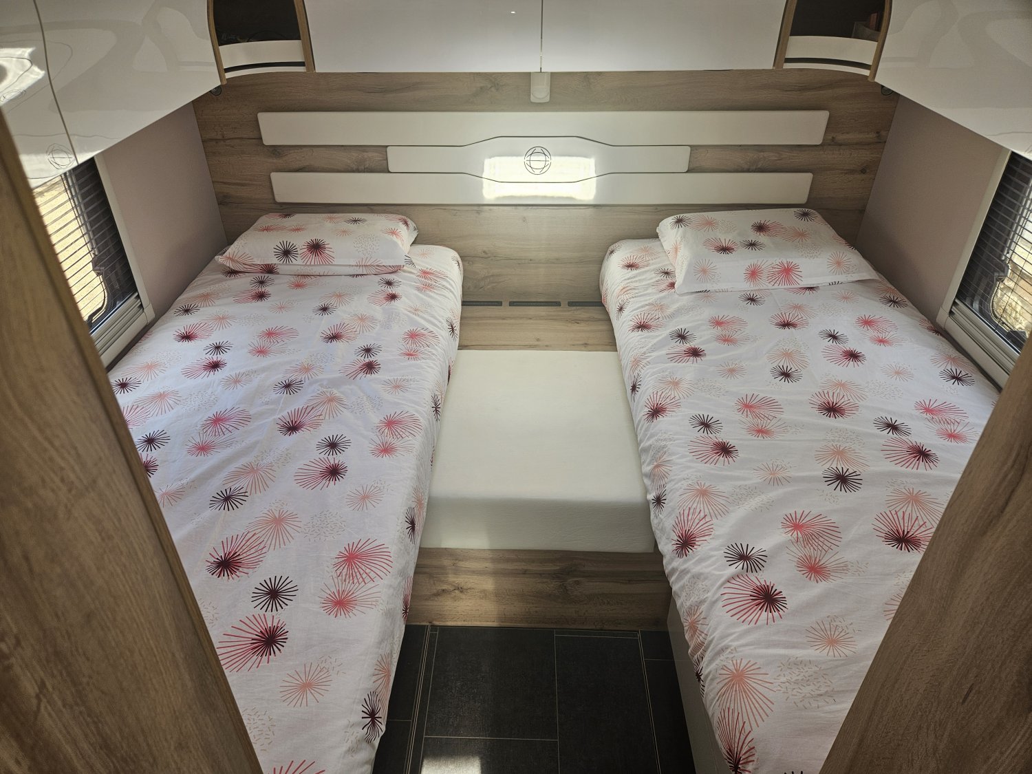Son implantation, des lits Jumeaux électrique avec système de rapprochement et un lit pavillon.