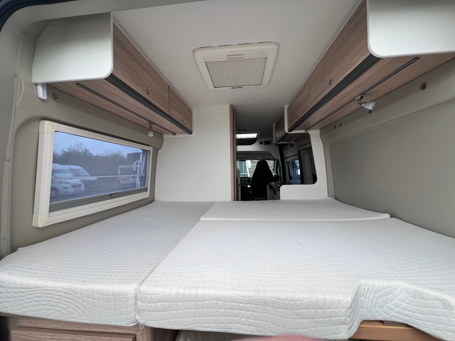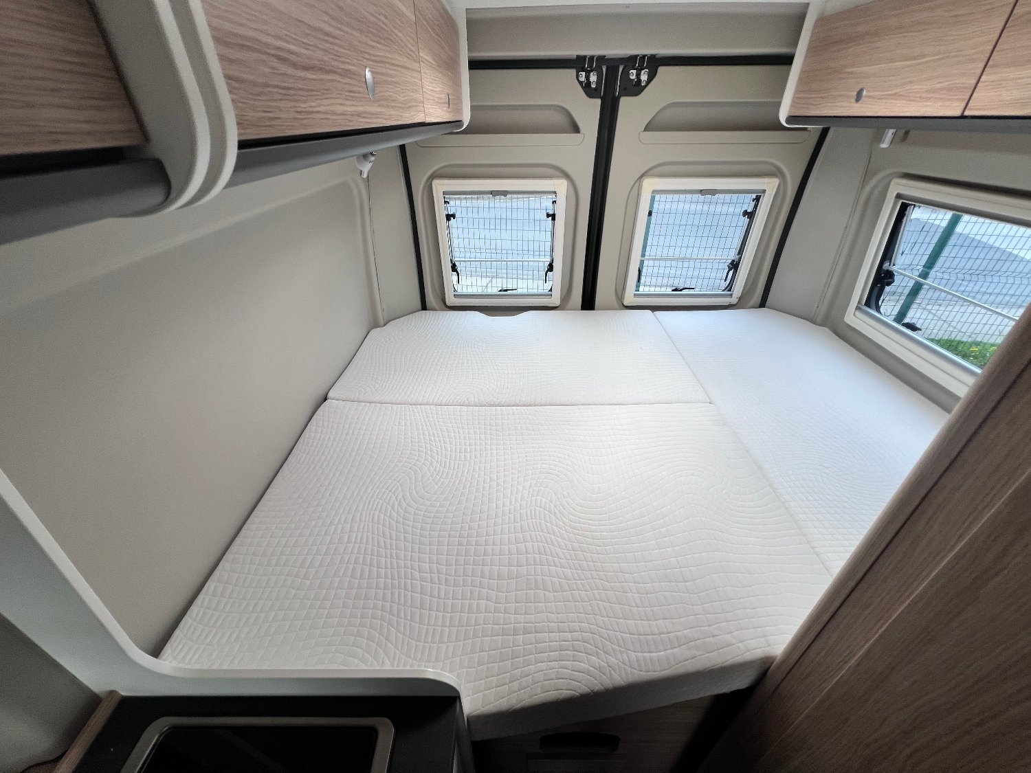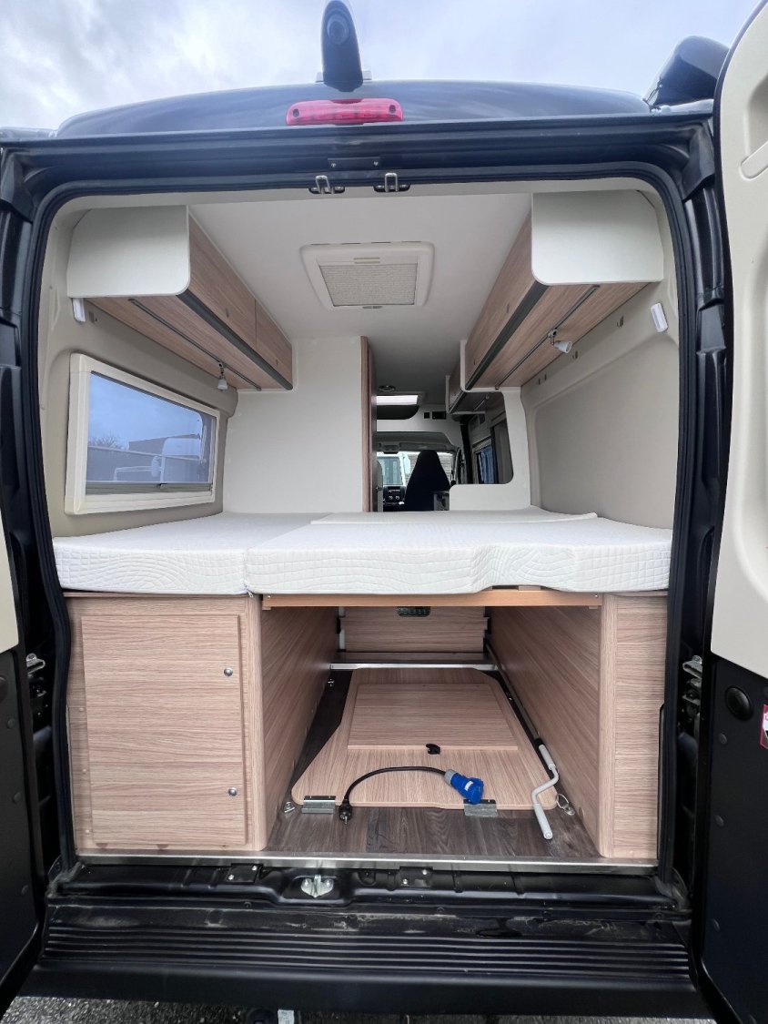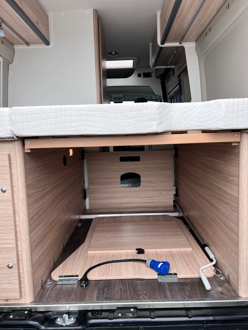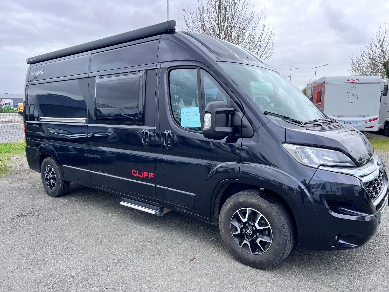 OPTIONS : store extérieur – antenne satellite – TV – jantes alu – peinture full black – stores plissés de cabine – moustiquaire de porte cellule – gaz GPL