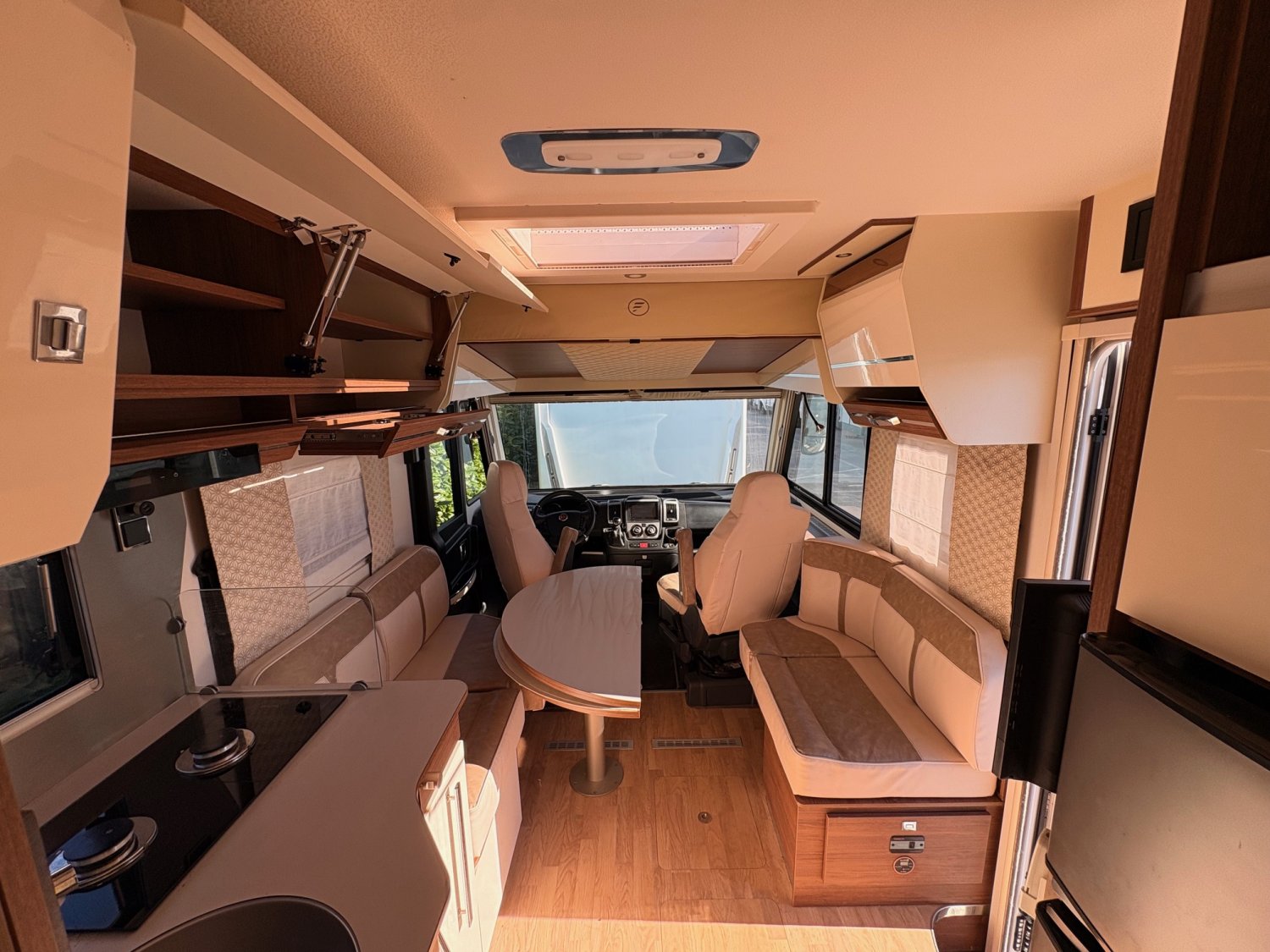 HOTTE ASPIRANTE, CLIM CELLULE, CHASSIS ALKO, FEUX JOUR LED, LIT CENTRAL REGLABLE EN HAUTEUR, BOITE AUTO, SOPLAIR EXT, STORE EXT, JANTES 16 POUCES, ATTELAGE, BATTERIE LITHIUM, CAMERA DE RECUL, TRUMA 6EH, ANTENNE SAT AUTO, CONVERTISSEUR 3000W, HILL DESCENT, TRACTION +, VOLANT ET POMMEAU CUIR, SUPER B 160 AMP
