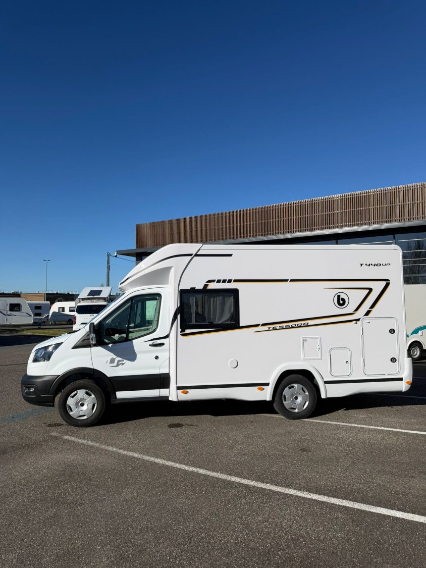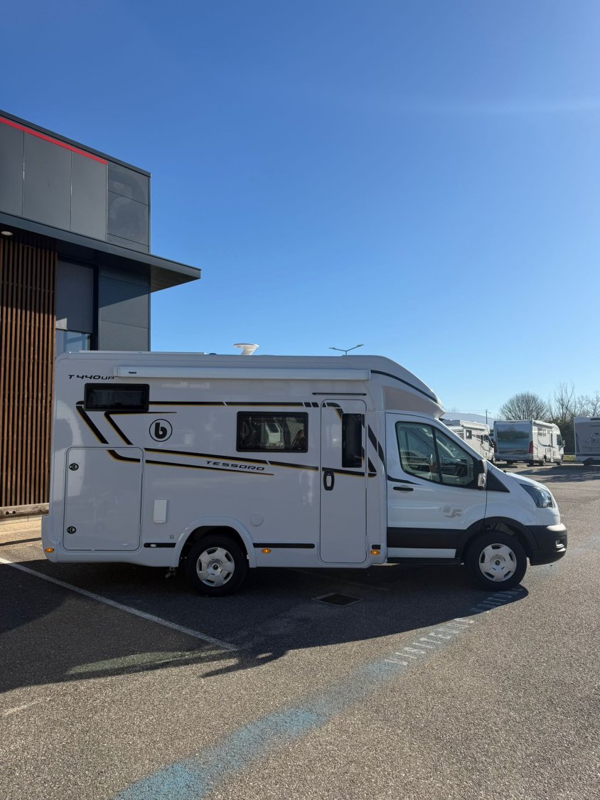 Le Benimar Tessoro 440 UP, un profilé prêt à partir ! 4 places couchages et carte grise, store extérieur, panneau solaire, antenne, TV, tout y est !