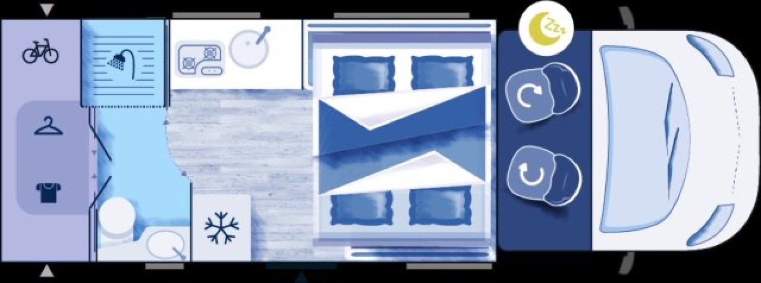 Excellent état, très agréable à vivre, avec son grand espace sous lit de pavillon, rangements conséquents, grande soute, espace toilette avec douche séparée