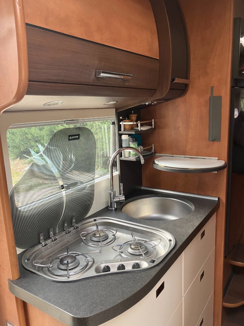Equipement: Stores et moustiquaires sur tous les ouvrants, vitre électrique et rétroviseurs chauffants, régulateur de vitesse, feux antibrouillard, sièges AV pivotants, intérieur cuir et tissus Macchiato en très bon état, store extérieur THULE, moustiquaire porte de cellule, TV avec antenne omnidirectionnelle TNT, combiné TRUMA, grand frigo avec freezer séparé (160 l), cabinet de toilette avec douche (110 l eau propre, 90 l eaux usées) , nombreux rangements (y compris dans le double plancher), attelage remorque SAWIKO/ALKO, immense soute avec deux grandes portes d'accès, surclassement soute avec revêtement en feutre et filets de rangement, jantes aluminium 16 pouces (garde au sol augmentée), deux batterie cellule, vérins de stabilisation AR mécaniques, TRUMA Duo Control et filtres à gaz, lanterneau Turbovent coin cuisine, entretien régulier (factures)