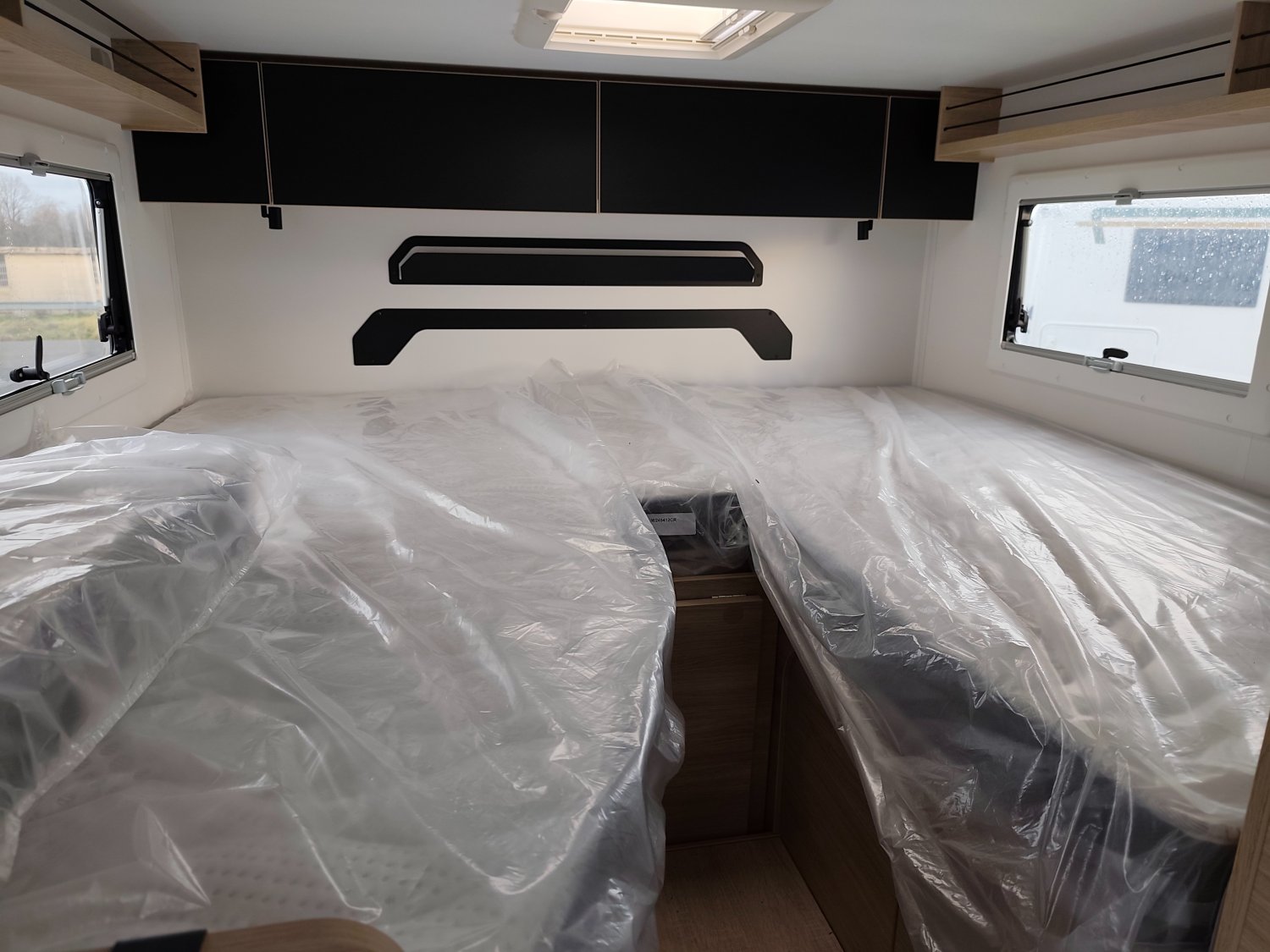 Avec le V697, Chausson réussit le difficile pari d’implanter 2 lits jumeaux de belles dimensions dans un van de seulement 6.36 mètres. Vous aimerez ses astuces de rangements comme son double plancher sous lit pour stocker table et chaises de camping. Idéal pour un couple qui souhaite voyager partout, en toute discrétion,