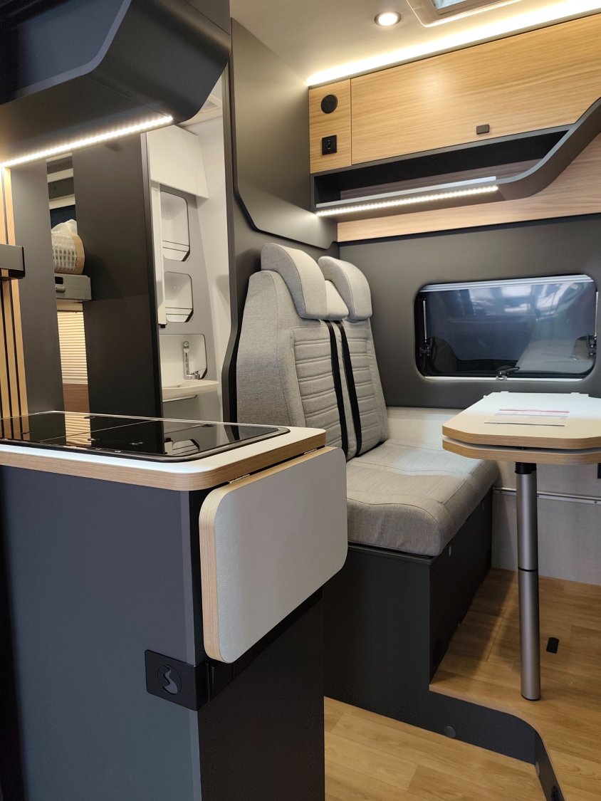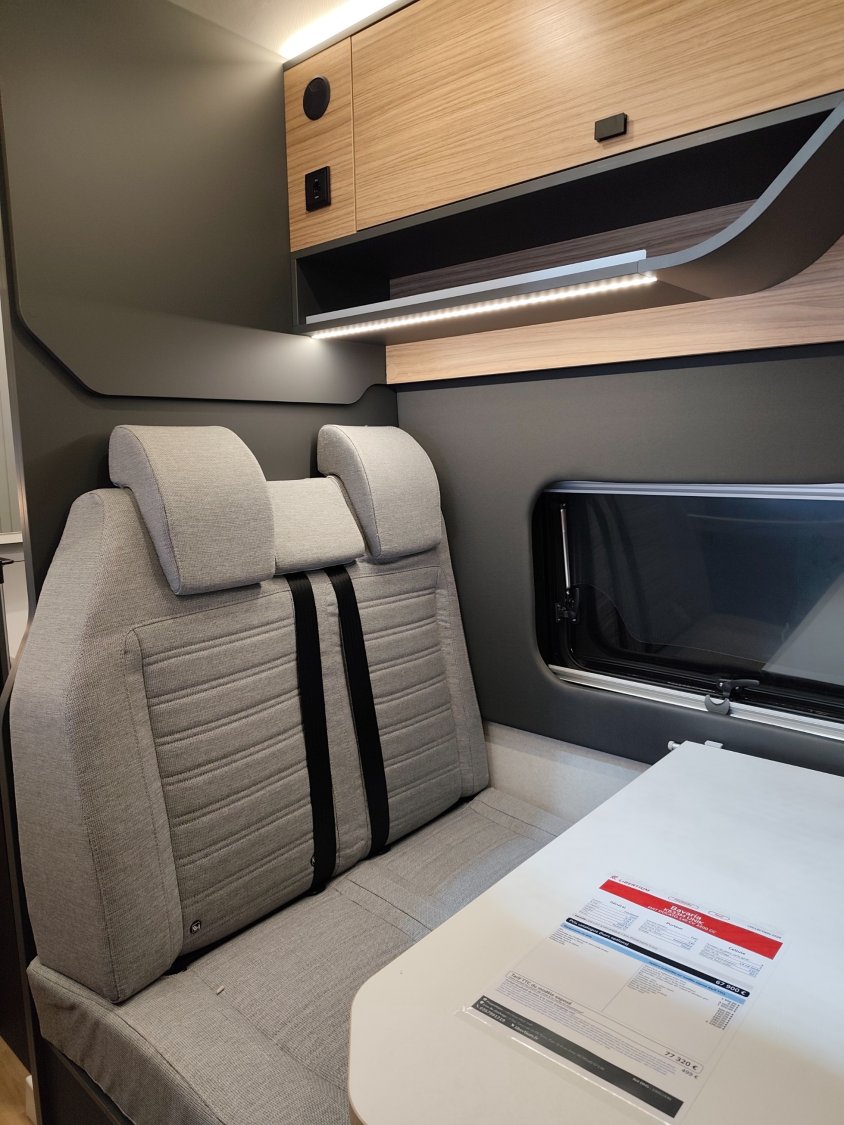 Moquette dans la cabine, Abs, Douchette eau froide/chaude dans soute arrière, Mobilier Annecy, Housse de siège en tissus, Sellerie silver, Système Isofix