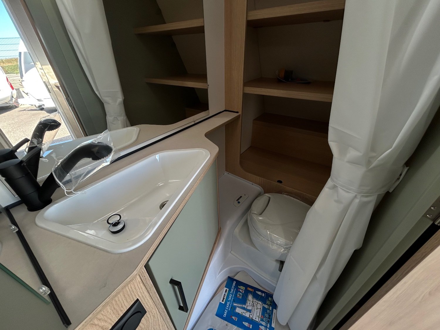 Découvrez cette magnifique caravane LMC Style 400 F, modèle 2024, alliant élégance moderne et confort. Sa décoration en chêne associée à un vert sauge doux et un sol effet béton lui confère un style scandinave charmant, tout en offrant une ambiance chaleureuse et pratique pour vos voyages.