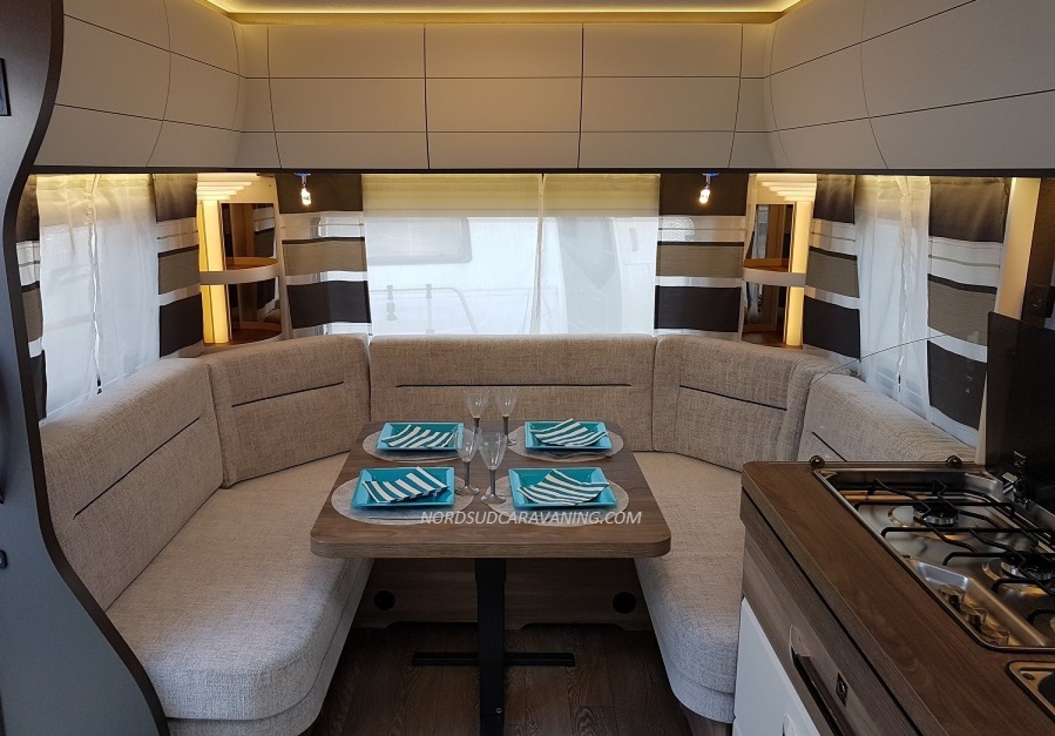 Cette caravane offre un intérieur spacieux et bien agencé pour vous détendre et profiter de vos vacances en toute sérénité en famille ou entre amis.