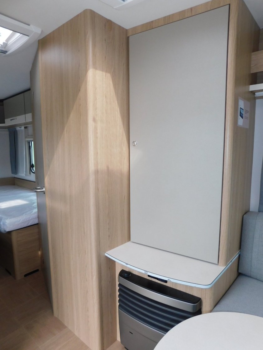 Réservoir eaux usées 25L sur roulettes + Fixation pour la roue de secours dans le coffre à gaz + Réservoir eau propre 44L + Porte moustiquaire Chauffe-eau pour l'approvisionnement en eau chaude Chauffage à air pulsé 230 V + Lanterneau 700 x 500 mm + Prédisposition emplacement TV + Éclairage supplémentaire (rail avec spots) + Renfort de toit avec prédisposition pour climatisation + Prises USB pour rail (x2) + Vérins stabilisateurs manuels à assiette + Roue jockey avec indicateur de charge (Poids du pack +12 kg)