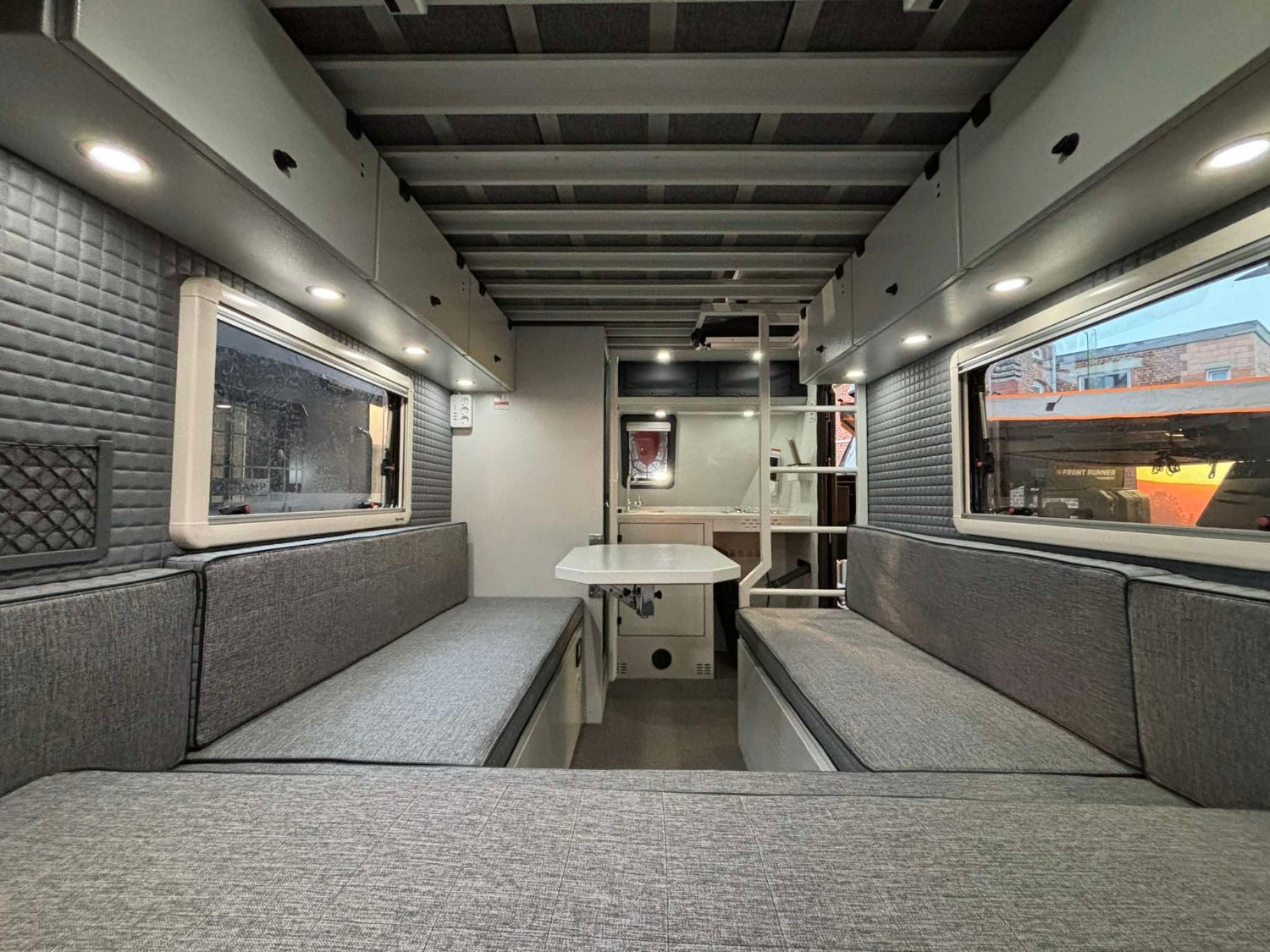 - Espace banquette modulable en couchette avec grande fenêtre hayon et vue sur l'extérieur