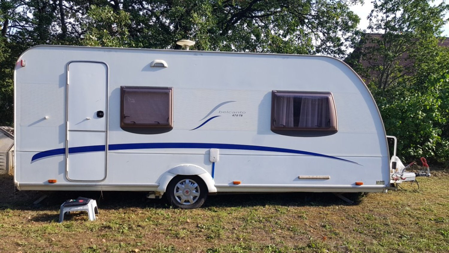 Belle Caravane Bürstner – Belcanto T S470 avec auvent gonflable et système Mover (déplacement électrique avec télécommande ). Porte velos. Très peu servie. État impeccable sauf petit choc en bas moulure droite.