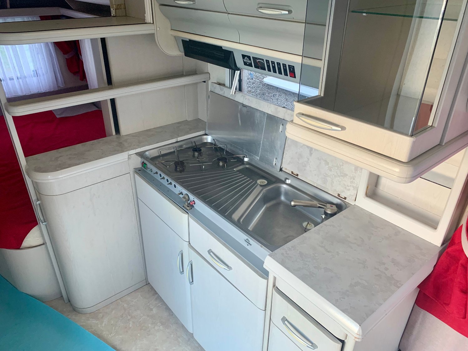 Coin cuisine avec réchaud gaz et évier inox