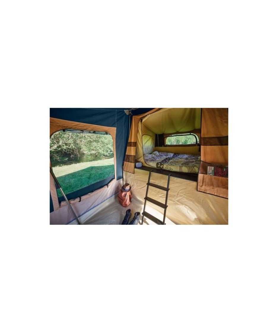 Les 3 entrées offrent un accès facile, une ventilation parfaite et une luminosité sans pareille. Des rangements sont prévus et la chambre est accessible par une échelle.