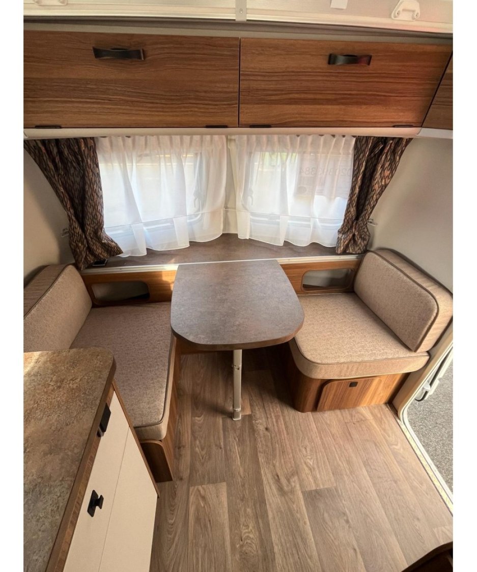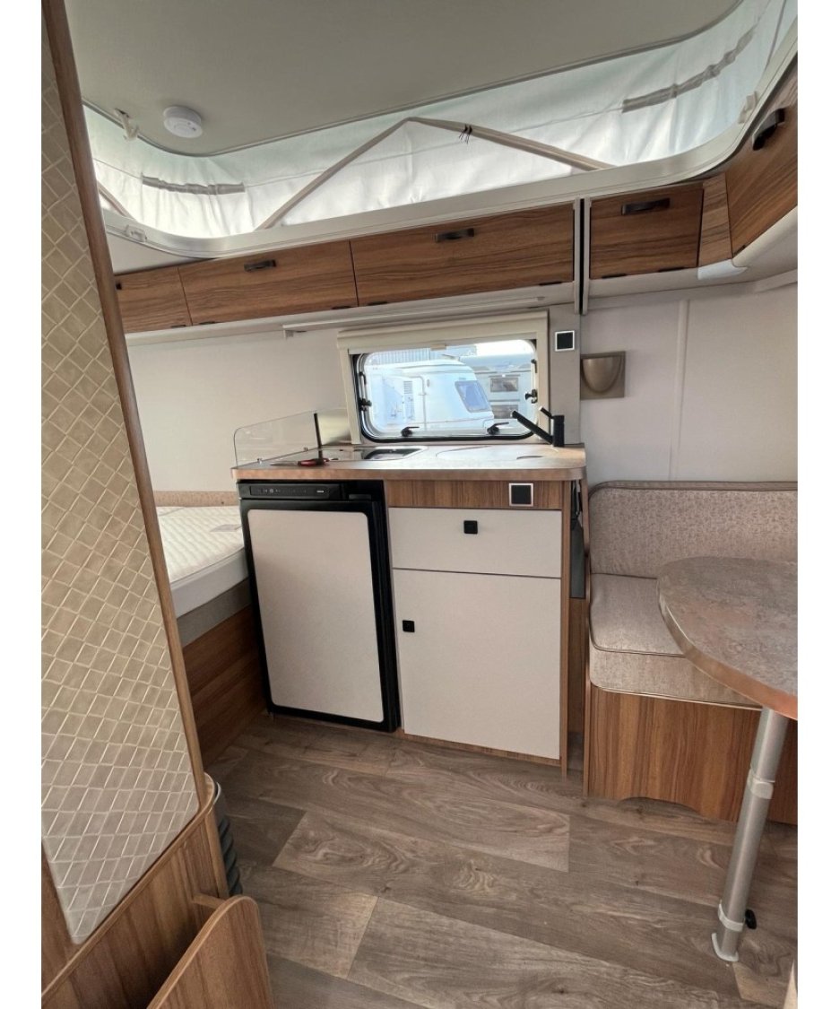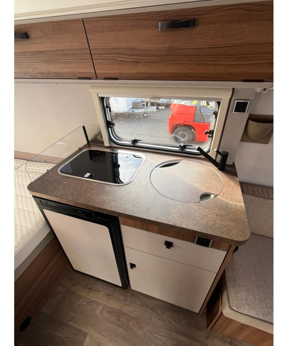 Caravane équipée de la Poubelle de porte ERIBA, Trappe arrière, couvercle évier, enjoliveurs chrome 35 cm