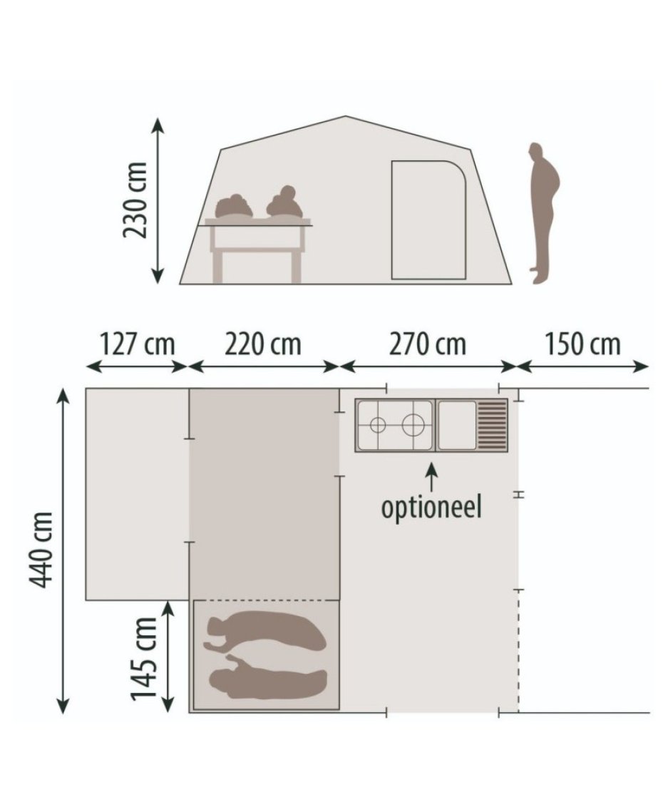 Hauteur de la tente : 2.30 m