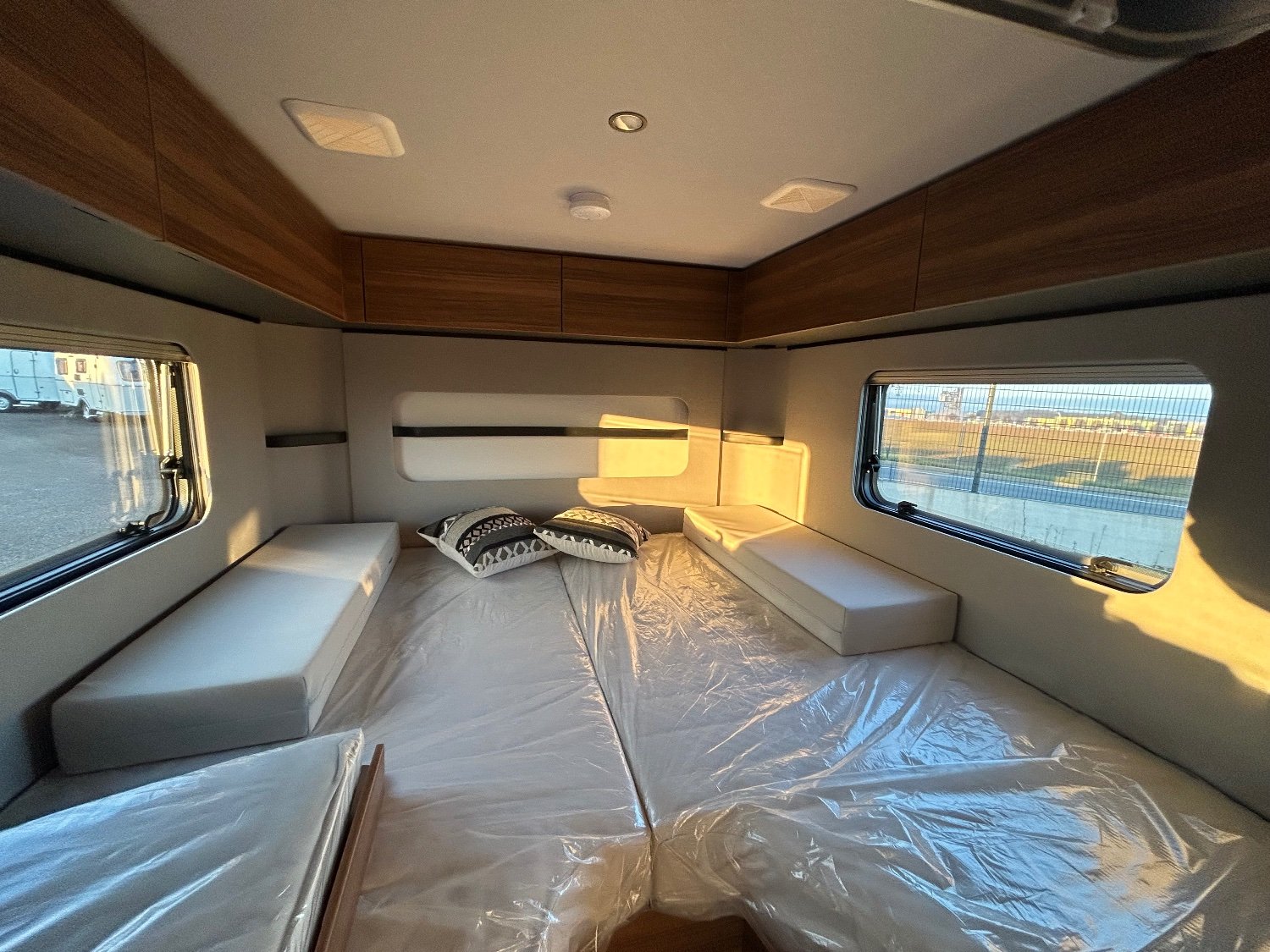 Vous disposerez de deux lits jumeaux à l'arrière , une cuisine et sa salle d'eau au milieu et à l'avant une dinette transformable en lit 2 places .
