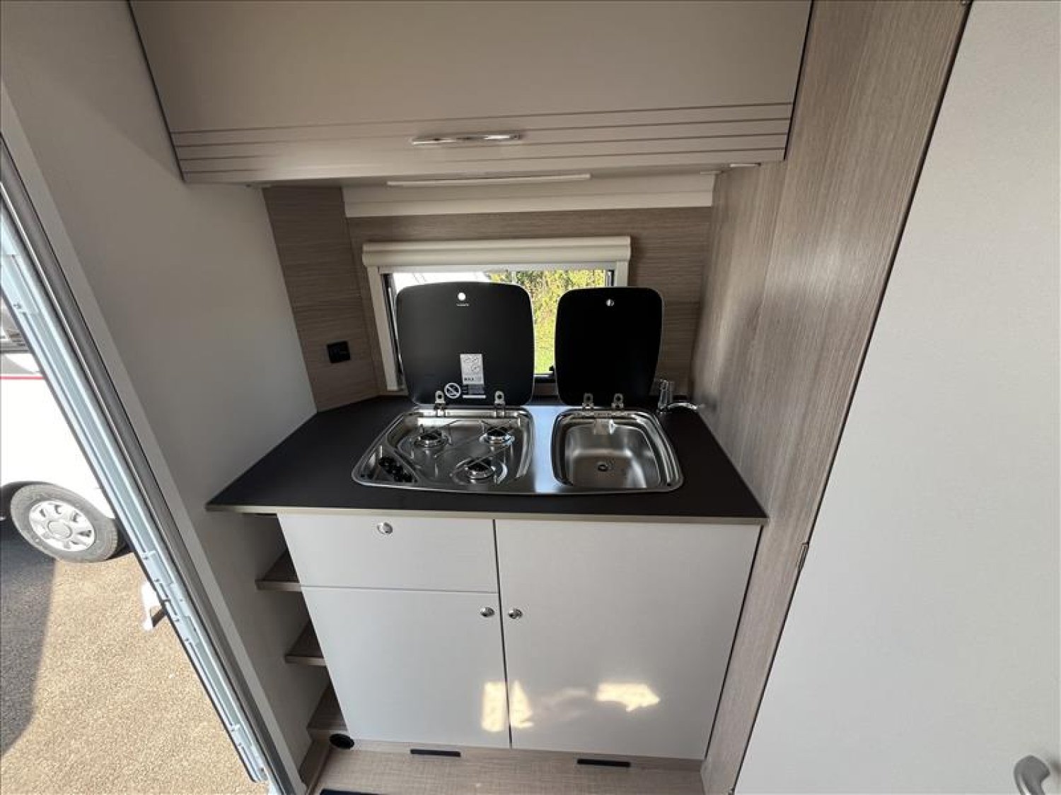 Chassis en acier galvanisé ultre-léger, Isolation du passage de roue, Chauffage S 3004, Eclairage d'auvent à LED, WC cassette, Réfrigérateur 142L, Tête d'attelage ALKO AK 160, Verins de stabilisation