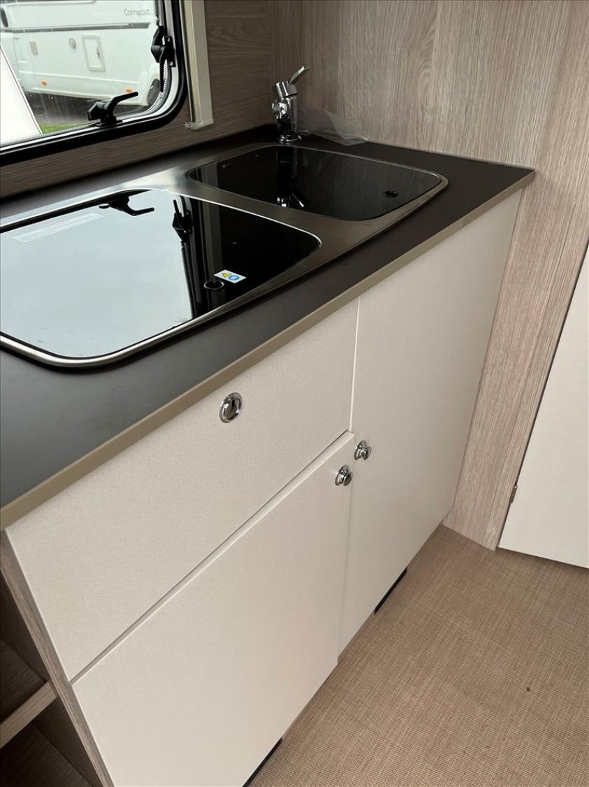 Chassis en acier galvanisé ultre-léger, Chauffage S 3004, Isolation du passage de roue, Réfrigérateur 142L, Eclairage d'auvent à LED, Verins de stabilisation, WC cassette, Tête d'attelage ALKO AK 160