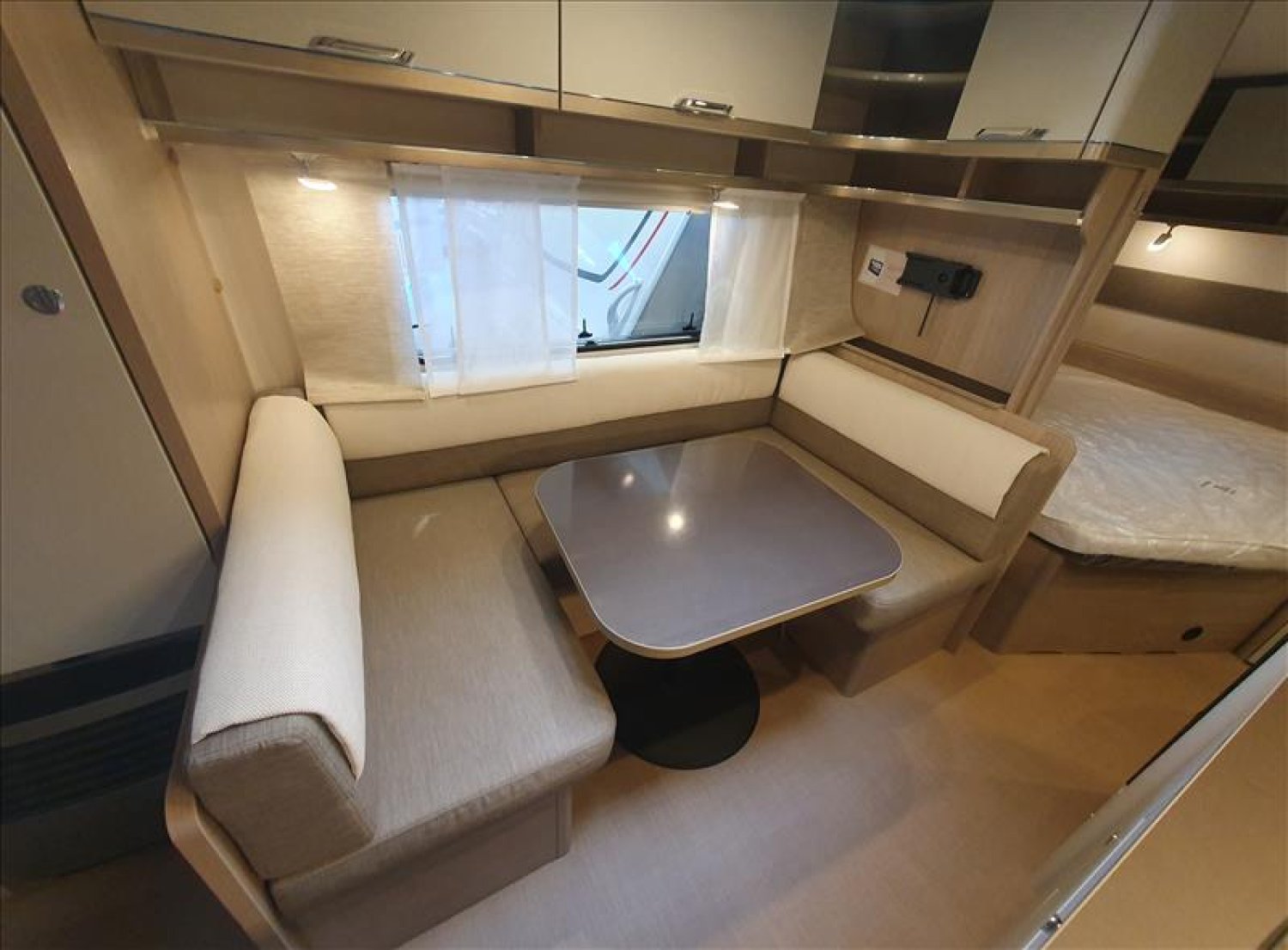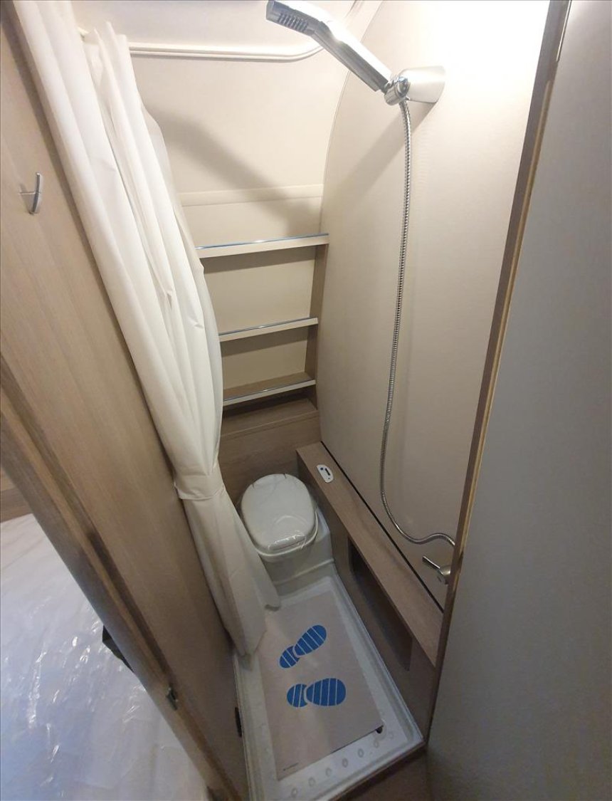 Détecteur de fumée, Chassis en acier galvanisé ultra-léger, Baie double vitrage ouvrantes teintées avec store, Flexible de douche, Isolation du passage de roue, Porte d'entrée monobloc, Poubelle intégrée à la porte d'entrée, Stabilisteur, Support de roue de secours dans le coffre à gaz, Eclairage LED 12v / 230 V, Tiroir de cuisine à rappel automatique, Chauffage S 5004, Eclairage d'auvent à LED, Transformateur 350 VA, Vérins de stabilisation, WC cassette, Évier, cuisinière à gaz 3 feux avec allumage électrique