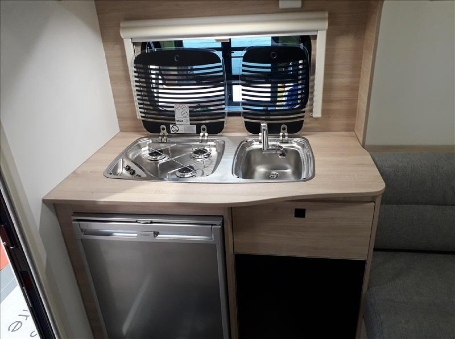 3ème feu stop, Cabine de douche séparée, Jantes Aluminium, Roue jockey, Eclaireur d'auvent LED, Bac à douche, Vérins rallongés à l'avant, WC à cassette, Store combi occultant + moustiquaire