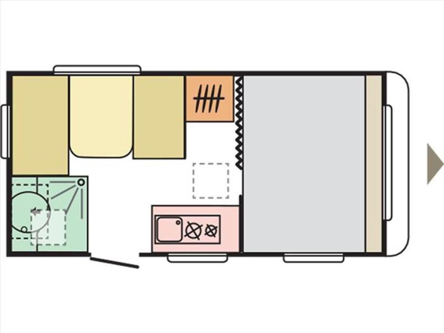 PNEUS 195/70 R 14 (88N), CHAUFFAGE GAZ TRUMA S3004, CHAUFFE EAU TRUMA THERME 5L, PRISES 230V, RECHAUD 2 BECS SMEV AVEC COUVERCLE EN VERRE, REFRIGERATEUR AVEC COMPARTIMENT CONGELATEUR 80 L, PORTE D'ENTREE EN 2 PARTIES, 3EME FEU STOP, BAVETTES, JANTES ACIER, LANTERNEAU HEKI S, LIT AVANT 190*140