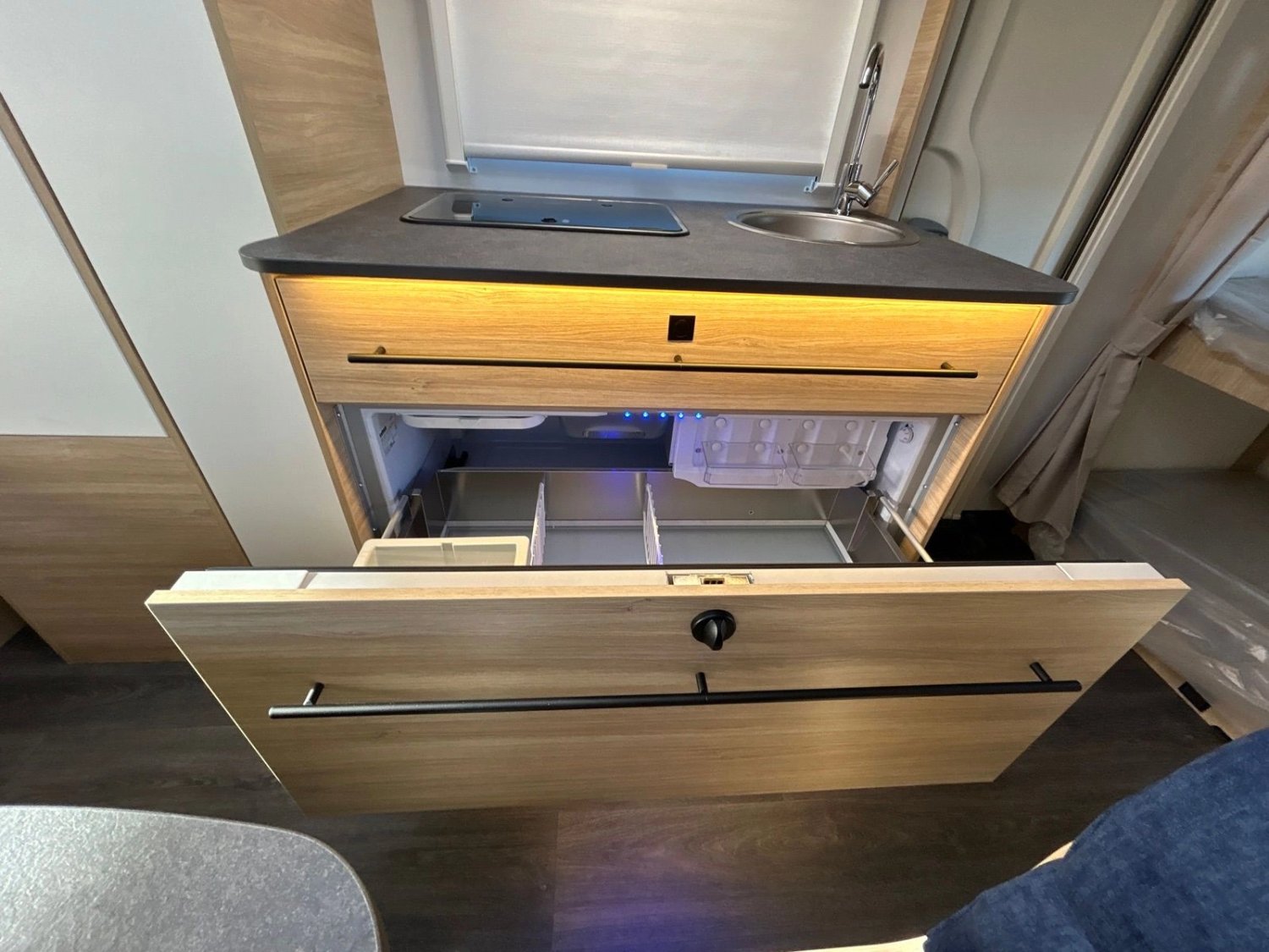 Cosy : Lanterneau panoramique (70x50), moustiquaire de porte, spots delecture leds supplementaires, confection exclusive, pochette en tissus chambre parents, pré-équipement batterie, baie avant*