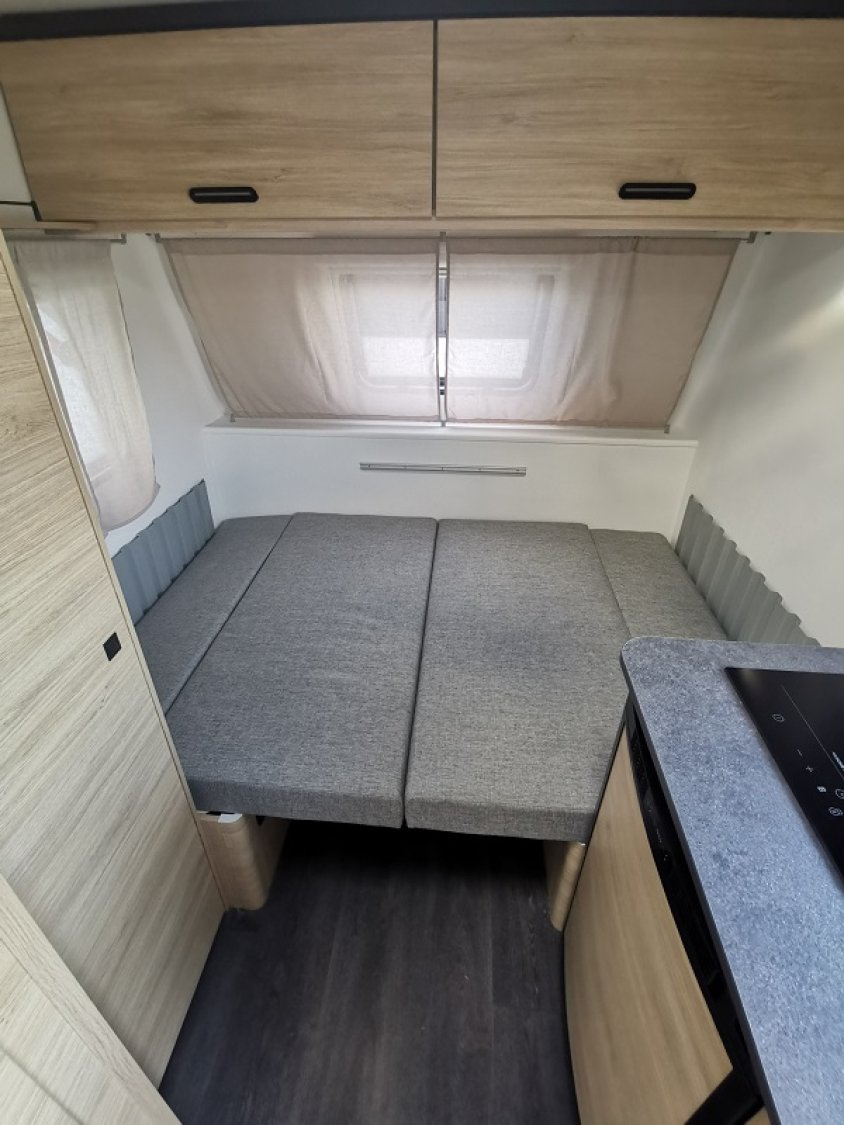 Nouvelle caravane familiale 4 places affichant un PTAC de seulement 750 kg, aux équipements 100% électriques.