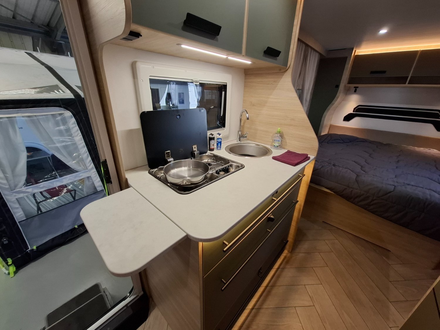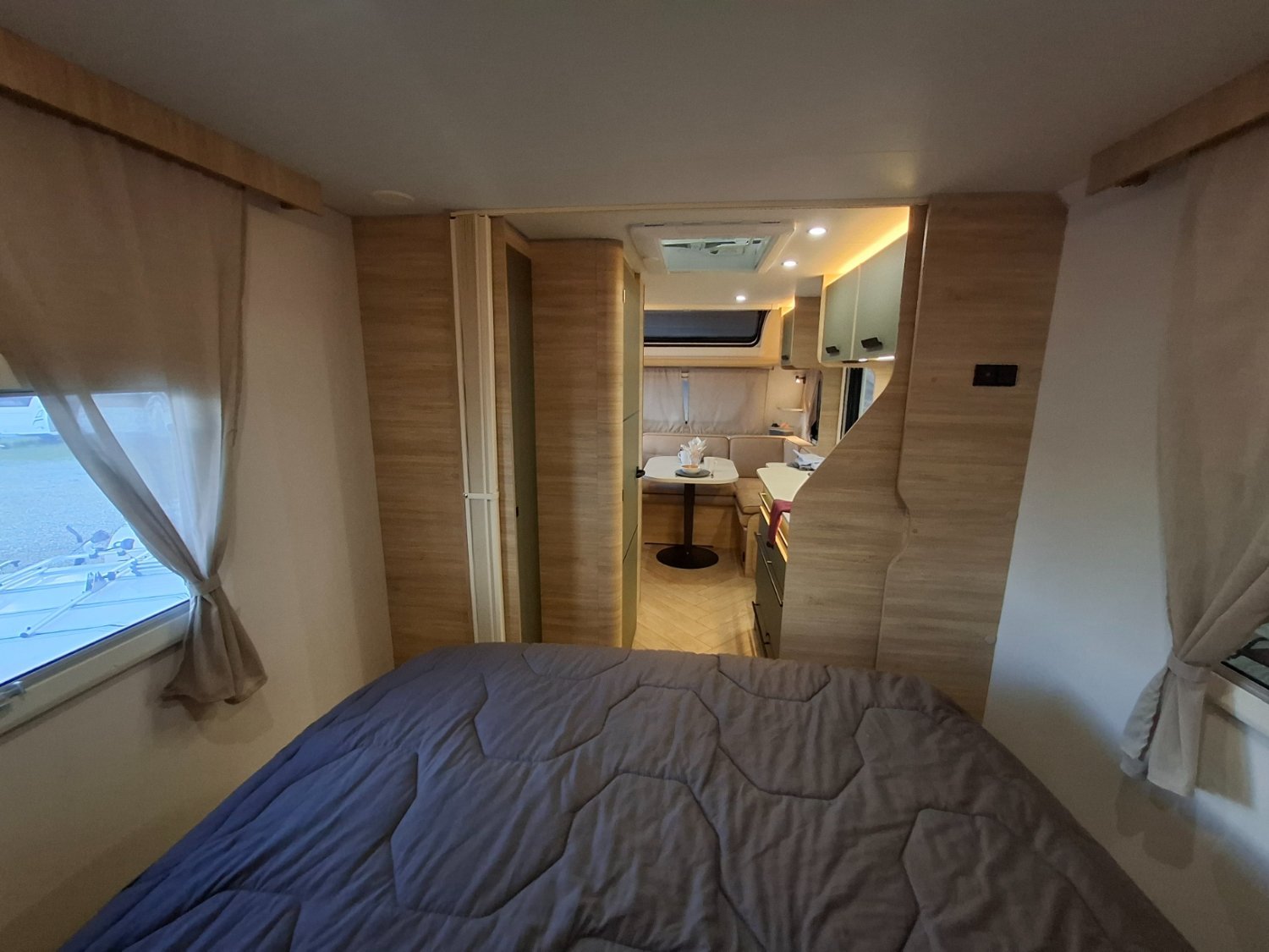 Intérieur élégant et design extérieur différent, pour cette belle caravane avec lit central, grand salon en U, douche et cabinet de toilette spacieux et innovant. Le dôme de toit au dessus du salon vous apportera une belle luminosité. L'EXCLUSIVE LINE dispose d'un excellent niveau d'équipements : grand réfrigérateur à compression, chauffage et eau chaude, géolocalisation. Elle sera mise à disposition avec un auvent classique, ou un auvent gonflable ou un store de toit posé. C'est vous qui choisissez !