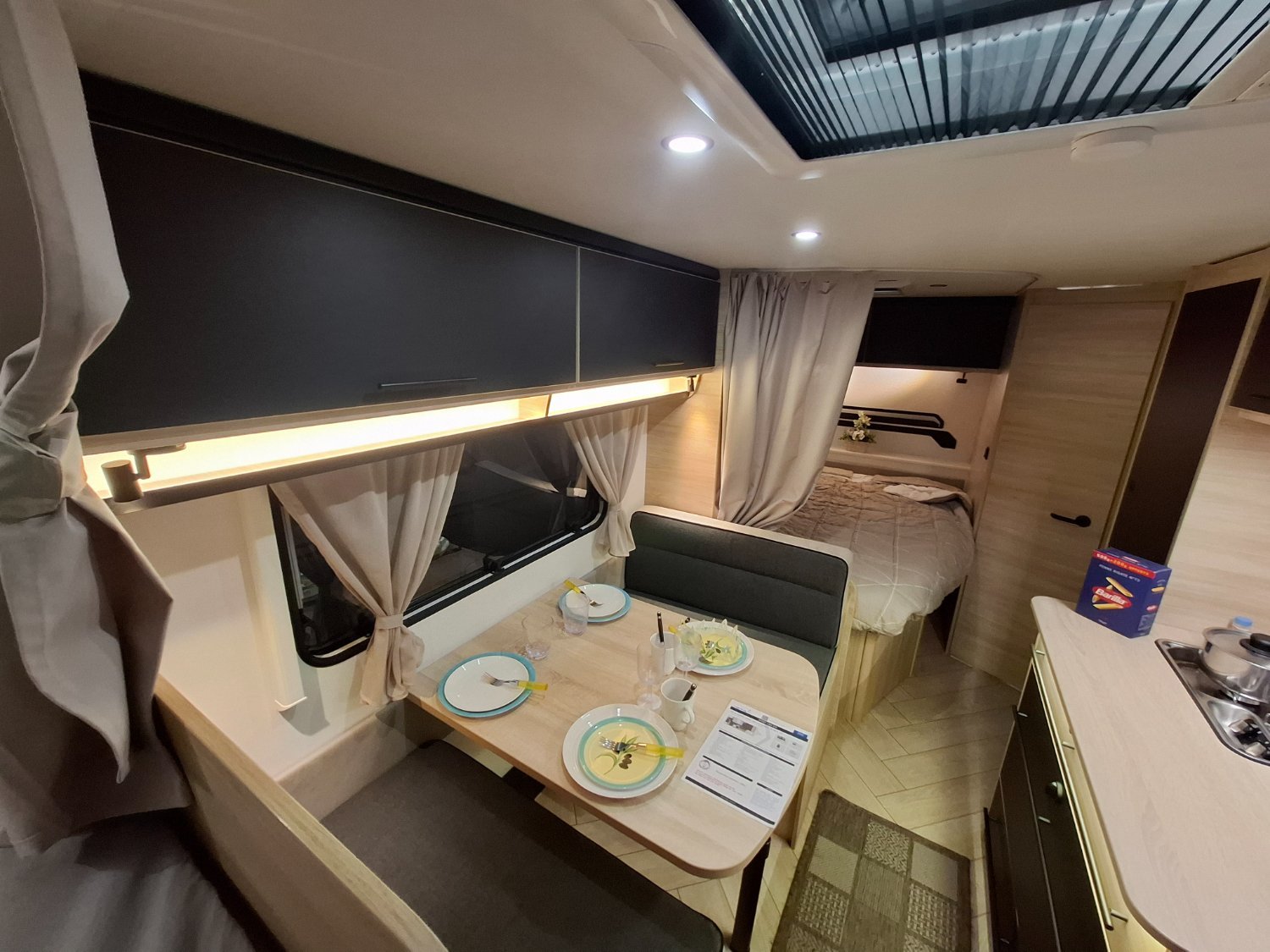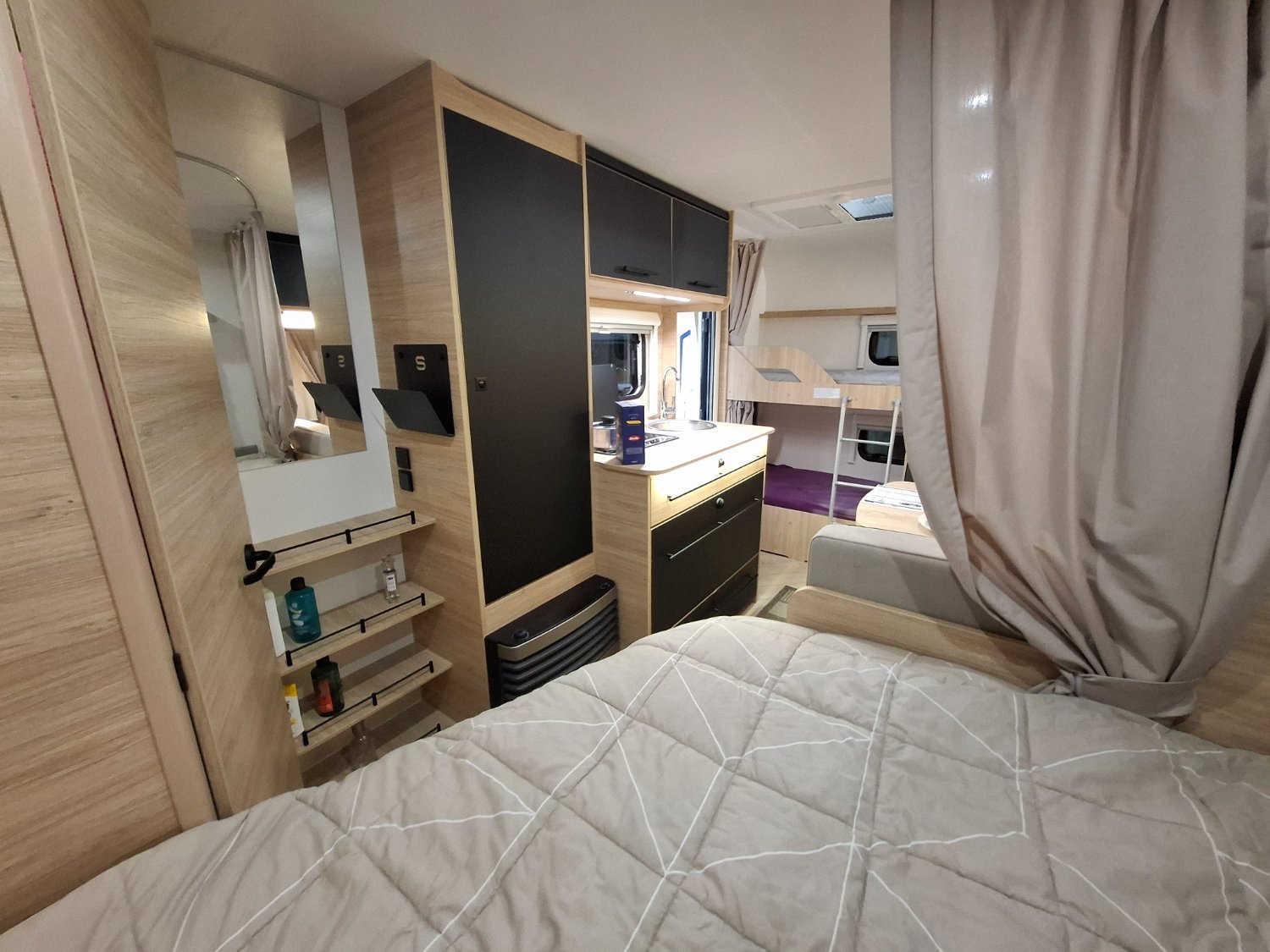 Une caravane familiale disposant d'une implantation atypique, laissant un espace de vie confortable. Le niveau d'équipements est excellent !