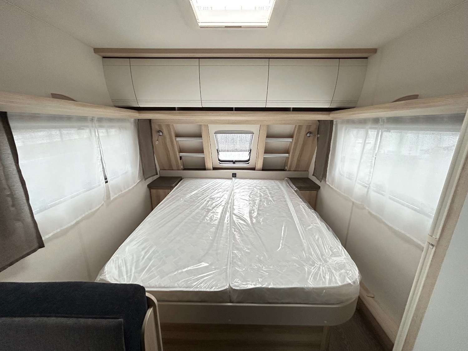 C'est la plus petite caravane HOBBY avec lit central , en effet à l'avant vous retrouverez son grand lit central, un salon face à face au milieu et à l'arrière sa salle d'eau avec douche et sa cuisine équipée .