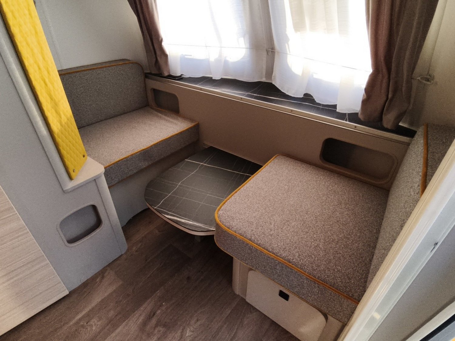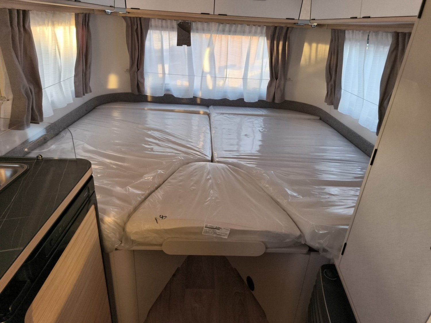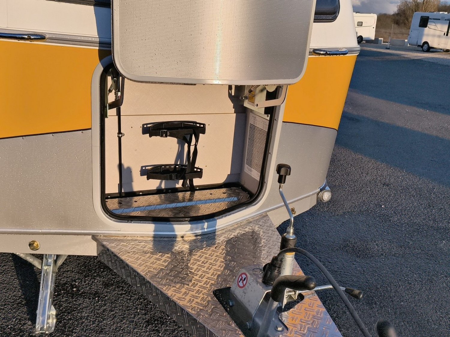 - Pack "Confort Eriba Touring" (moustiquaire de porte cellule, stores plissés confort, prises supplémentaires, couvercle évier avec planche à découper, poubelle intégrée à la porte cellule, miroir grossissant supplémentaire à fixation magnétique),
