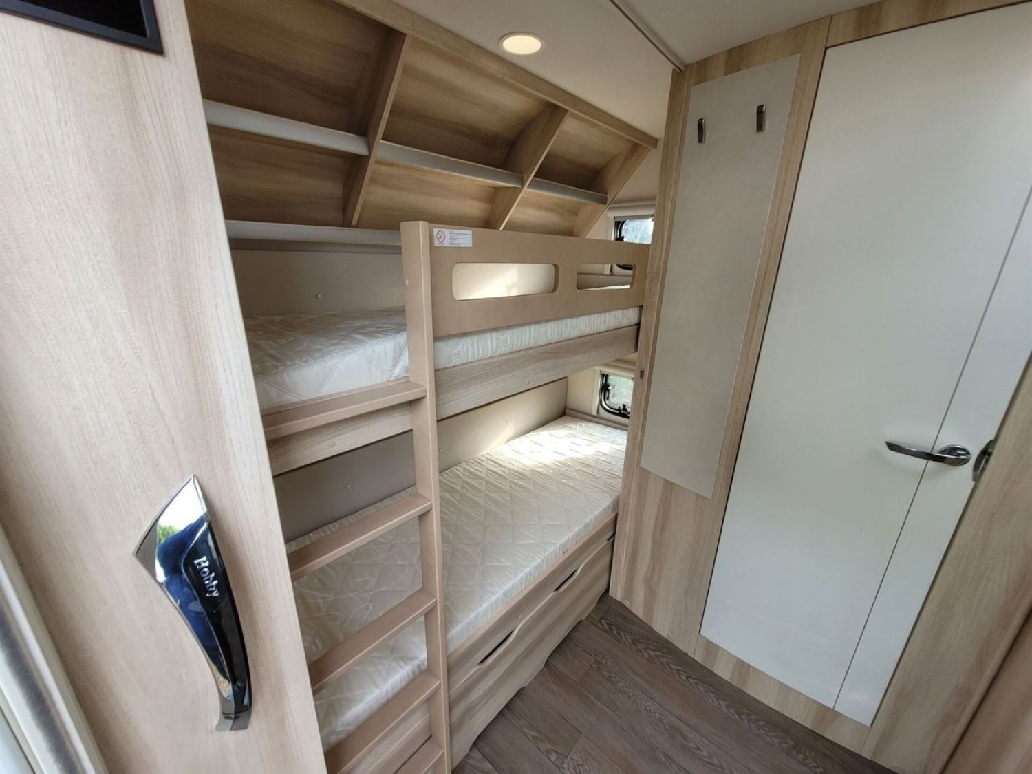Lit transversal, lits superposés, lit dinette 1 place, Chauffage Truma Gaz, Chauffe-eau Boiler Truma, réservoir 50L, précâblage clim de toit, support tv, roue de secours ...