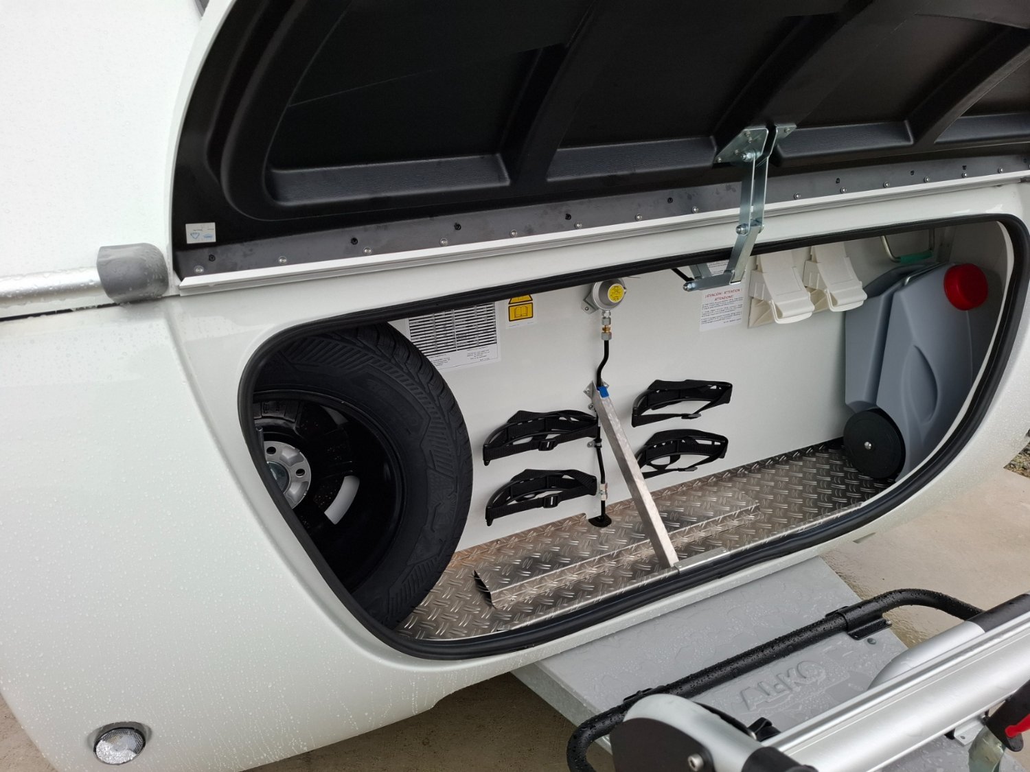 Roue de secours et support dans le coffre à à gaz