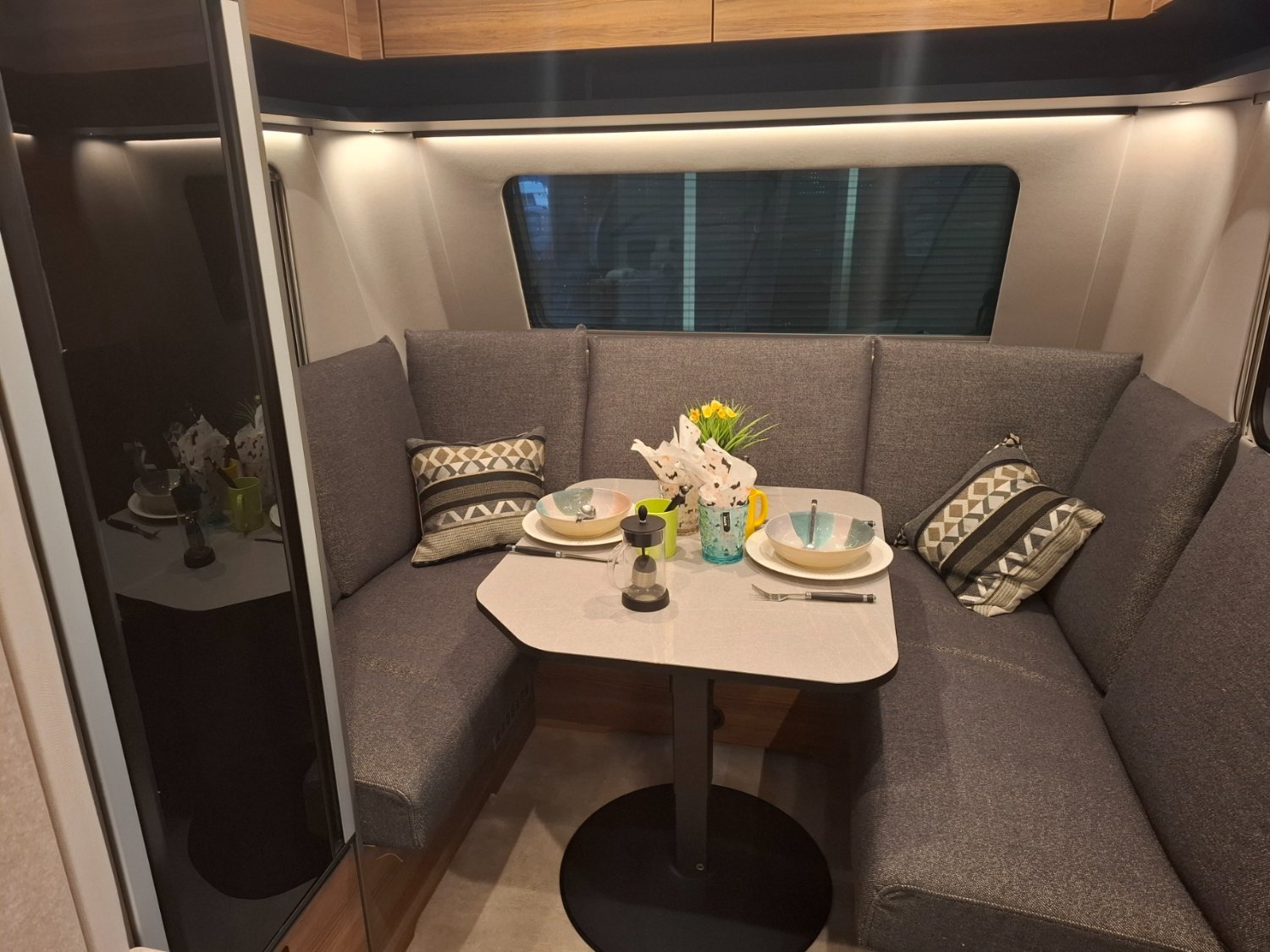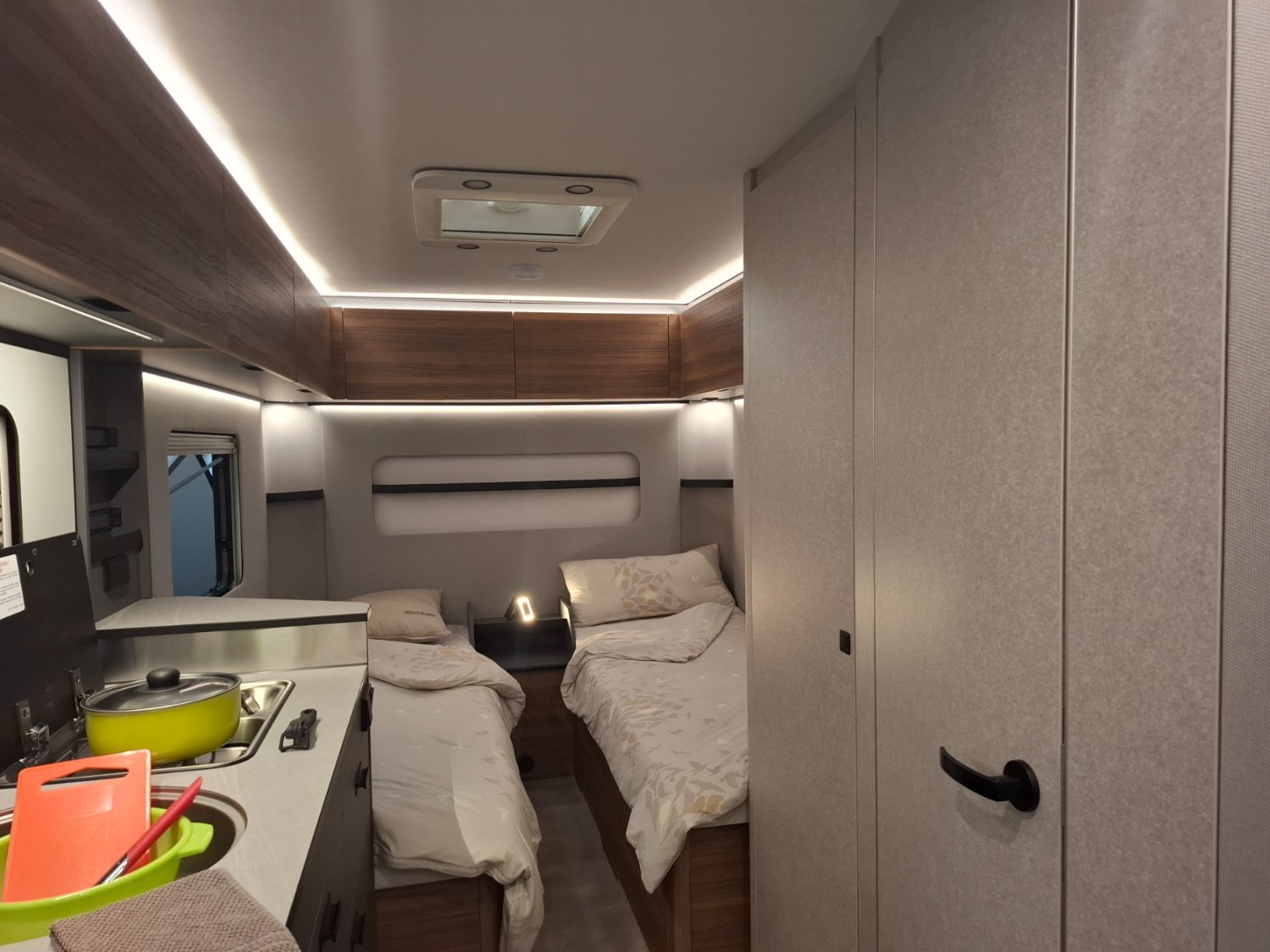Superbe caravane au design extérieur élégant et à l'ambiance intérieure chaleureuse et confortable., disposant de Lits Jumeaux, d'un grand salon situé à l'avant, d'un grand réfrigérateur à compression, d'un porte-vélos sur flèche, et globalement, d'un excellent niveau d'équipement. Elle sera mise à disposition avec un store de toit posé.