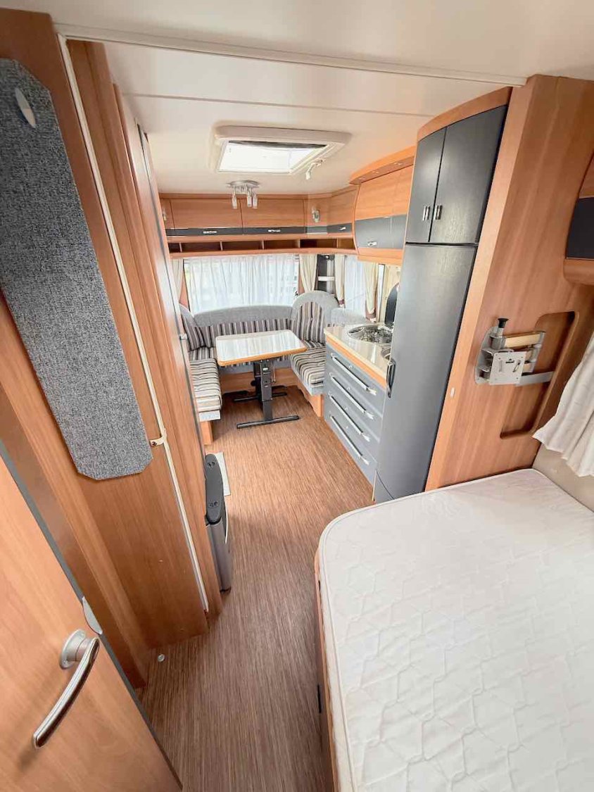 Cette caravane sera, comme pour l’ensemble de notre parc, vérifiée par notre atelier avant livraison. L’ensemble de la cellule est révisée et fait l’objet d’un contrôle d’étanchéité.