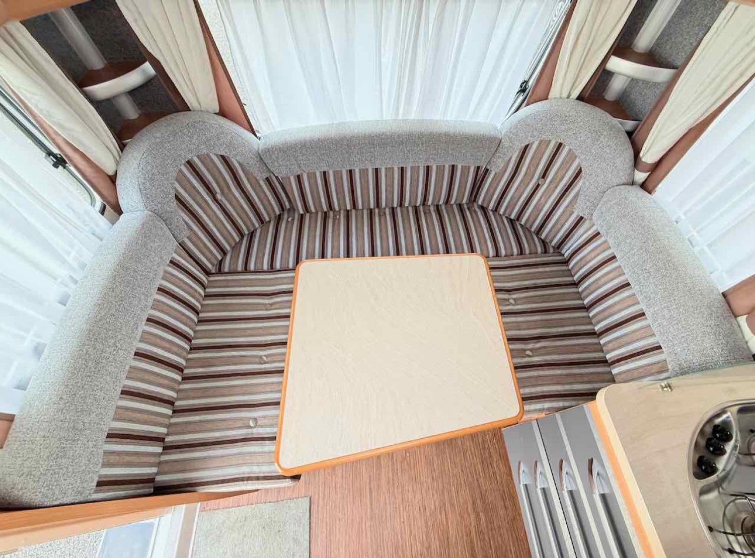 Le grand salon en U à l'arrièer de la caravane est donc transformable en un lit supplémentaire.